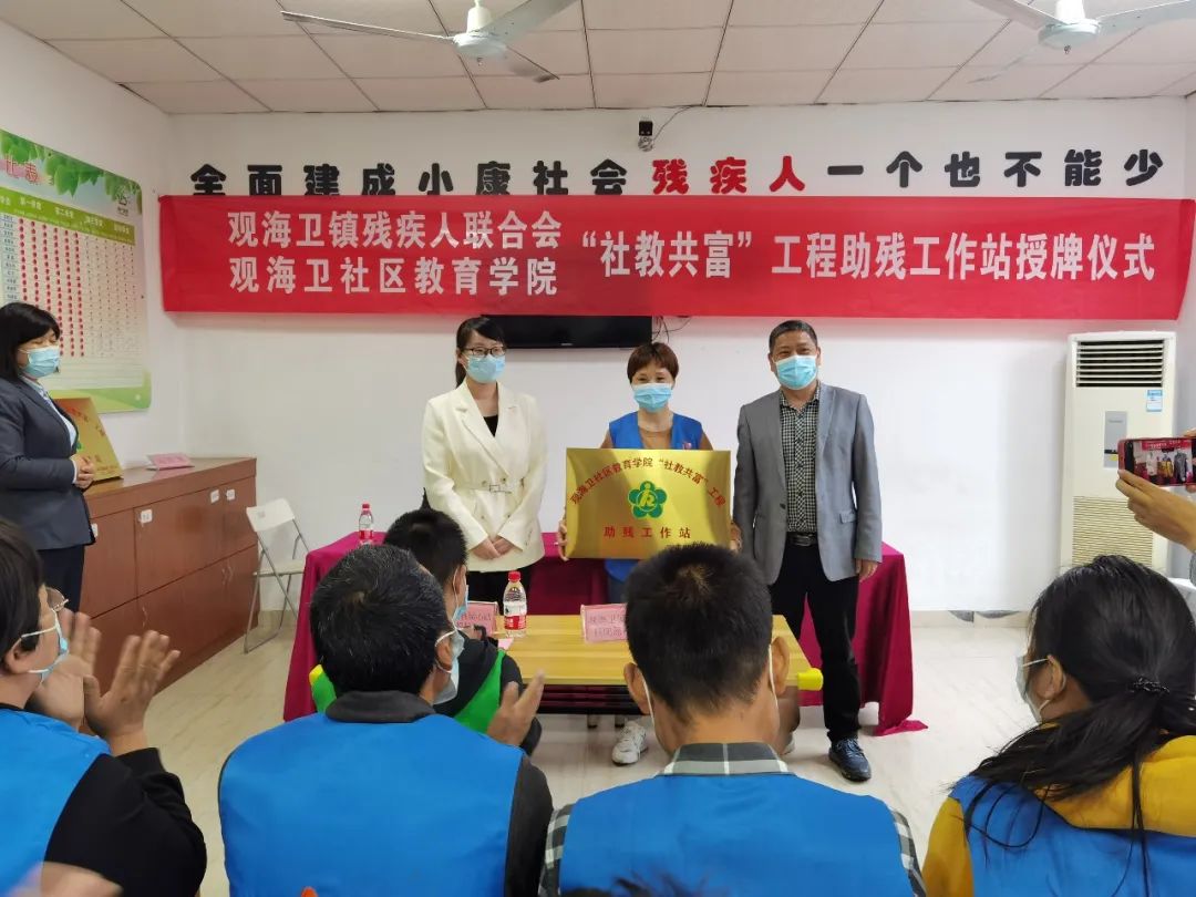 共富路上并肩⾛,社教助残同携行。5月13日下午,在第32个“全国助残日”来临之际,观海卫镇残联与镇社区教育学院在残疾人心贴心日间照料中心联合举办“社教共富”工程——助残工作站授牌仪式。