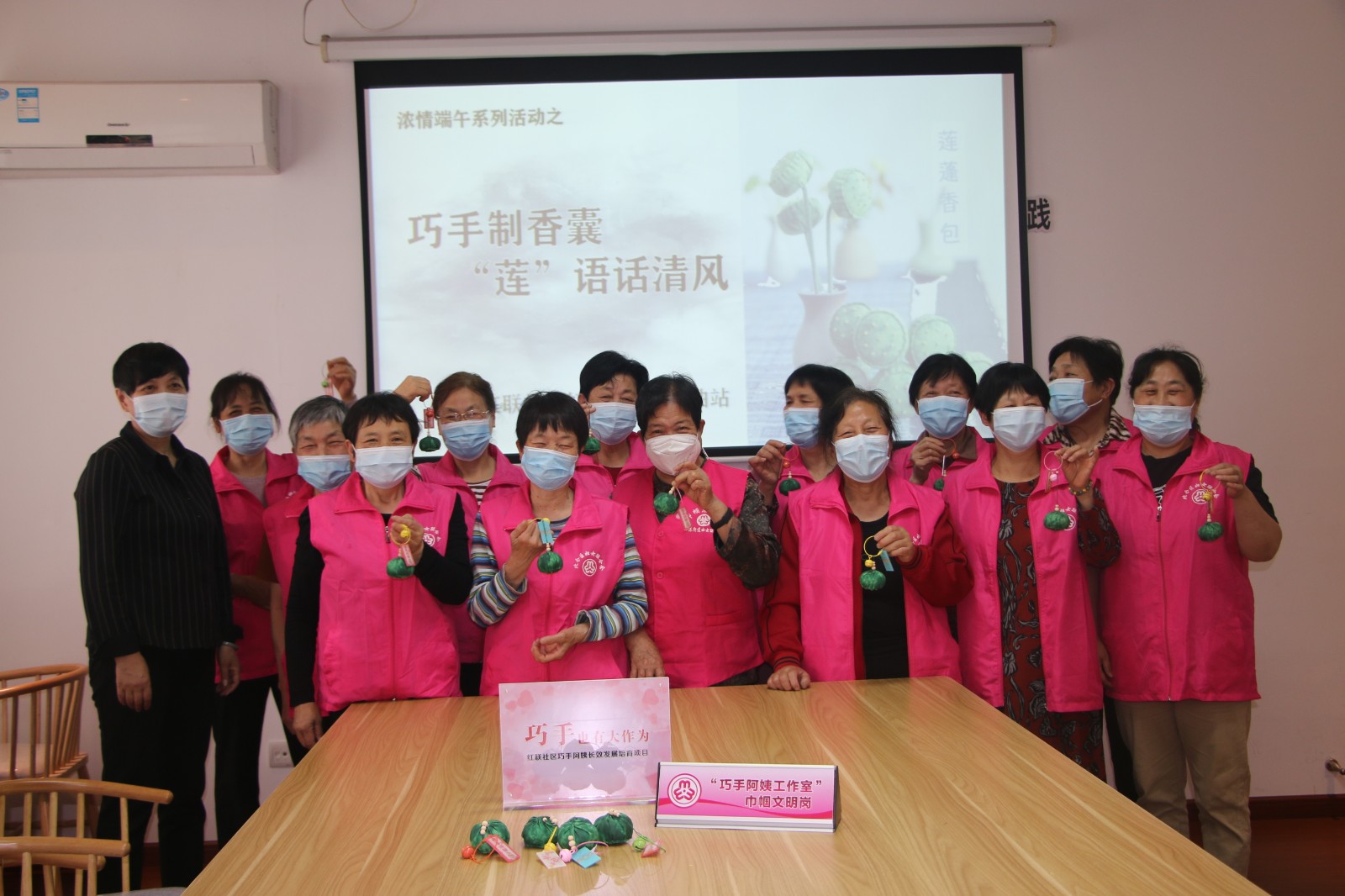 “佩戴香囊是端午节的传统习俗之一,手工制作莲蓬香囊一方面是弘扬我国的传统民俗文化,另一方面也是营造廉洁过节的良好氛围。5月19日红联社区特别邀请北仑区“女红巧手”孙人建老师阿拉的家活动室开展了一场巧手制香囊,‘莲’语话清风的迎端午主题活动。