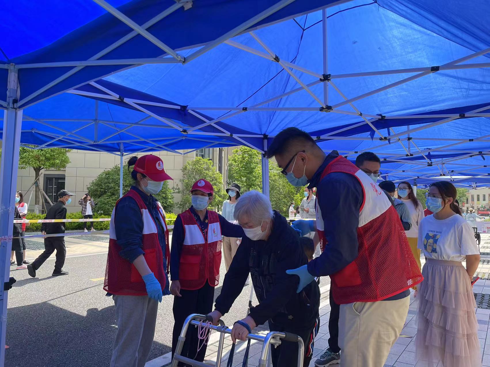 54日早上7点,未来盛园社区的蓝色帐篷下,核酸采样现场工作即将开启,工作人员、医务人员与志愿者已经集结完毕,整装待发。今天是五四青年节,在这个特殊的日子里,所有的现场工作人员闻令而动,将责任与担当扛在肩上,迎着朝阳逆行出发!在核酸现场,有人是维护秩序的“小红人”,有人是专业扫码的“小蓝”,有人是专业医护“大白”;在居民心中,他们是挺身而出、逆流而上的前进青年!再看排队做核酸的居民,大家整齐划一,全部规范佩戴了口罩,并严守一米安全距离,大家的井然有序保障了核酸采样工作的顺利开展。