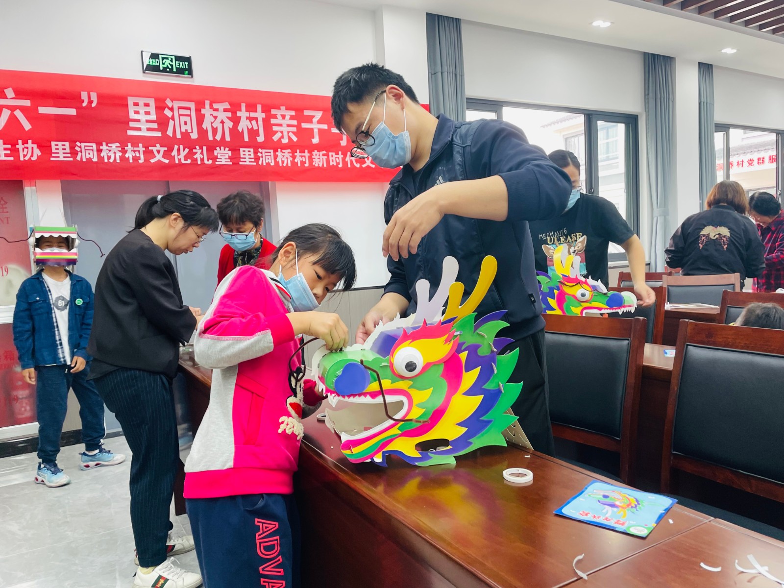 里洞桥村开展“多彩庆端午,快乐迎六一”亲子舞龙手工头套主题活动
