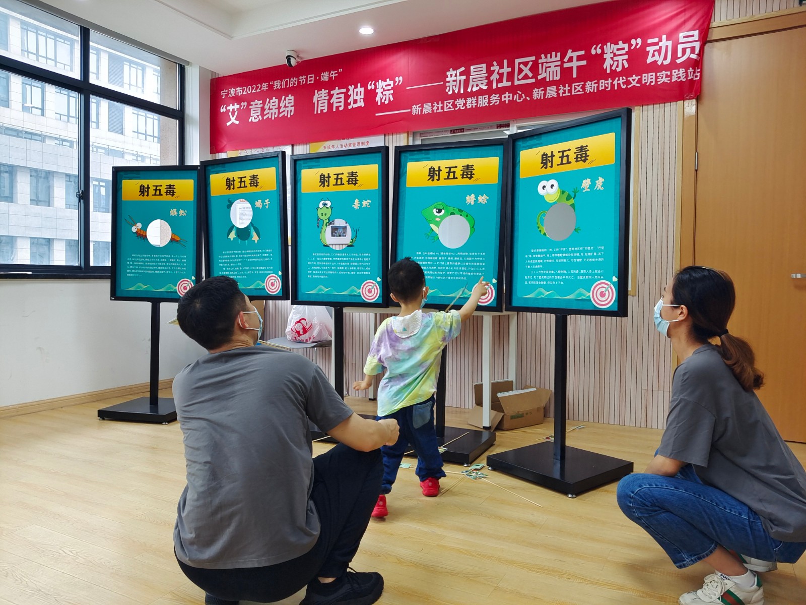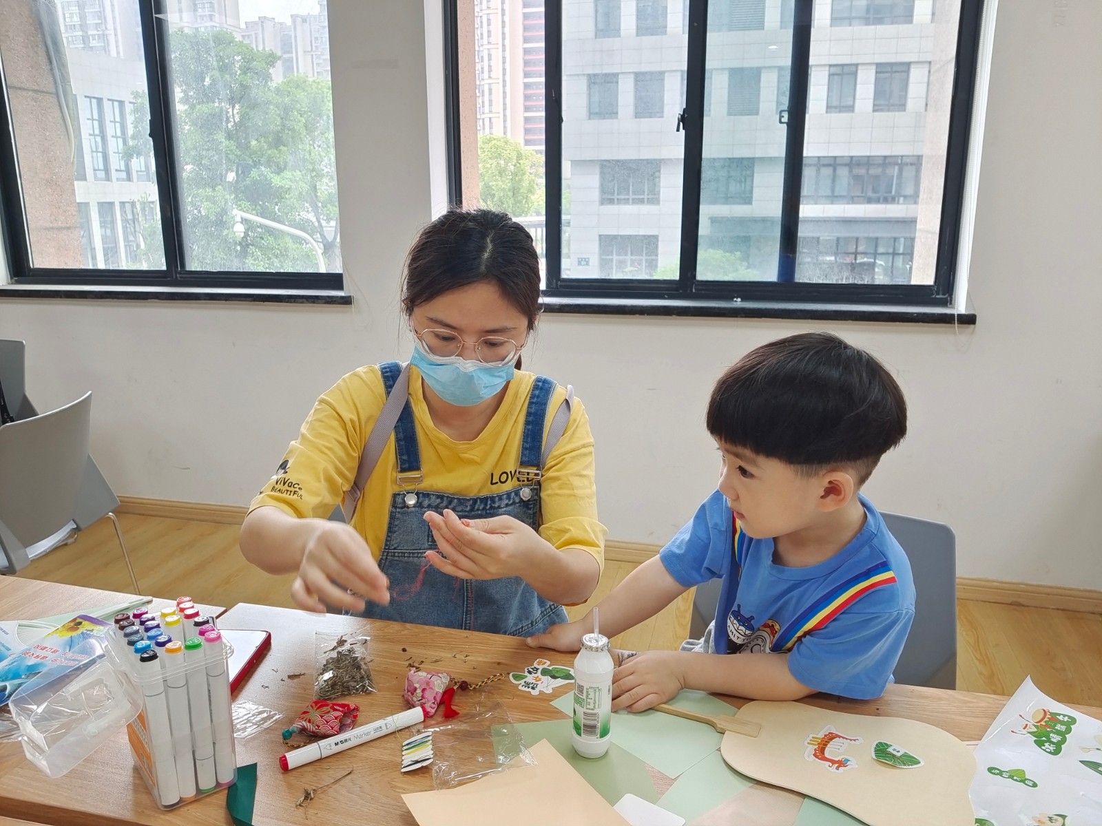 “妈妈,快看我射中了!”活动开始,孩子们首先尝试了“射五毒”这项游戏,并同时由父母向孩子介绍五毒是哪几类动物,在娱乐的同时也增长了知识。随后,在社区工作人员的指导下,孩子和家长们一起制作了香包花束以及以清廉为主题的画扇,充满了艾草香的花束让大家感受到了节日的喜悦,各式各样的画扇展示了大家心中对廉洁的理解,整个活动现场充满了欢声笑语。