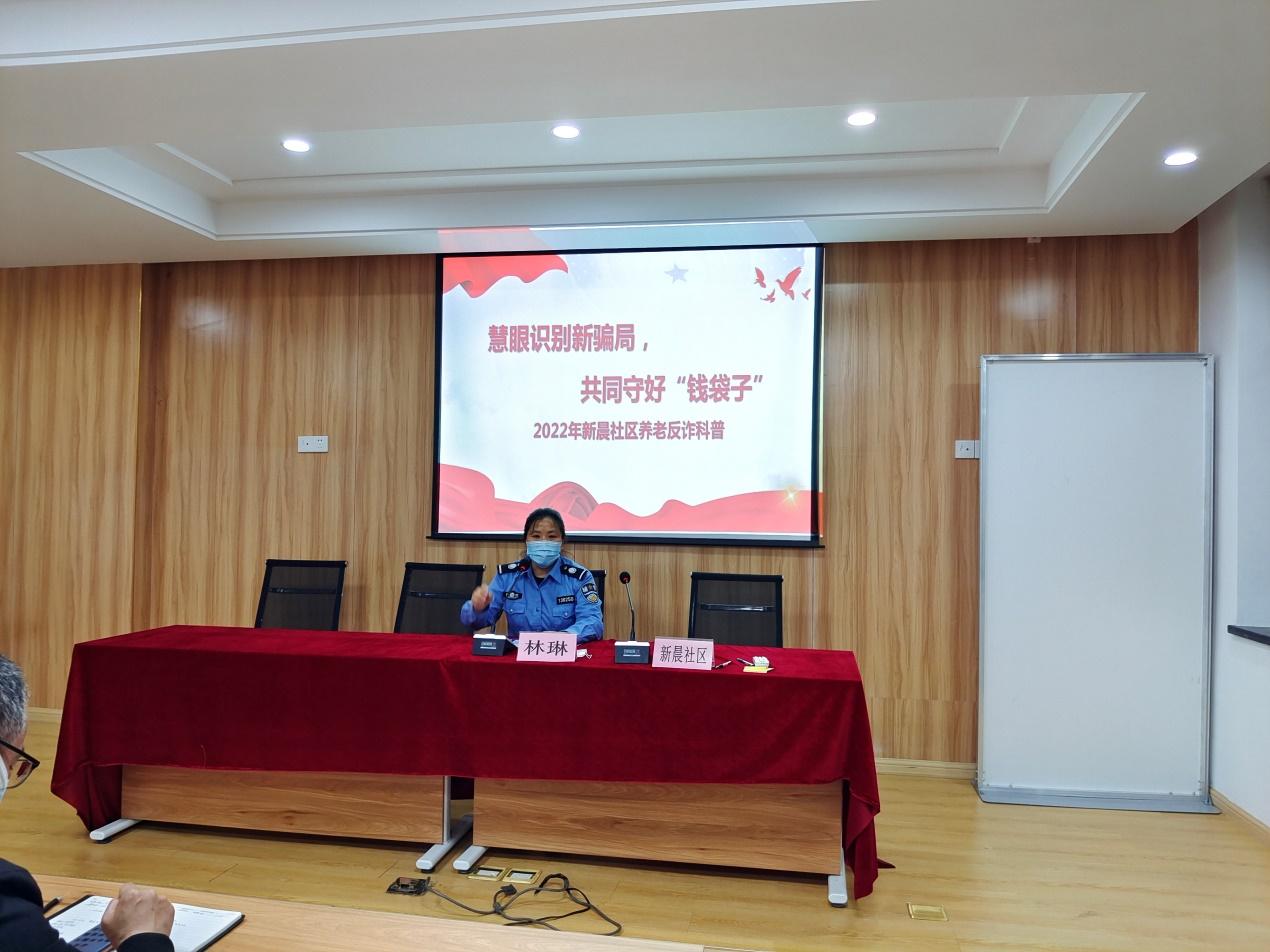 近日,养老诈骗频发,新晨社区作为一个下辖8个小区的大社区,居民人数众多,受骗事件也偶有发生。为了提高辖区内老年人的防诈意识,守住他们的“钱袋子”,新晨社区联合辖区警务室,开展了以“慧眼识别新骗局,共同守护好钱袋子”为主题的养老反诈科普宣传讲座。课堂上,辅警向在场的老年人讲解了“养老保险骗局”、“低价旅游骗局”、“保健品骗局”等常见养老骗局,同时结合诈骗案例帮助老年人进一步增强防范意识,掌握防骗知识和技能。叮嘱老年人在日常生活中一定要保持清醒的头脑,凡是涉及到钱财,一定要多一个心眼,提高防骗能力,避免上当受骗,守好自己的“钱袋子”。