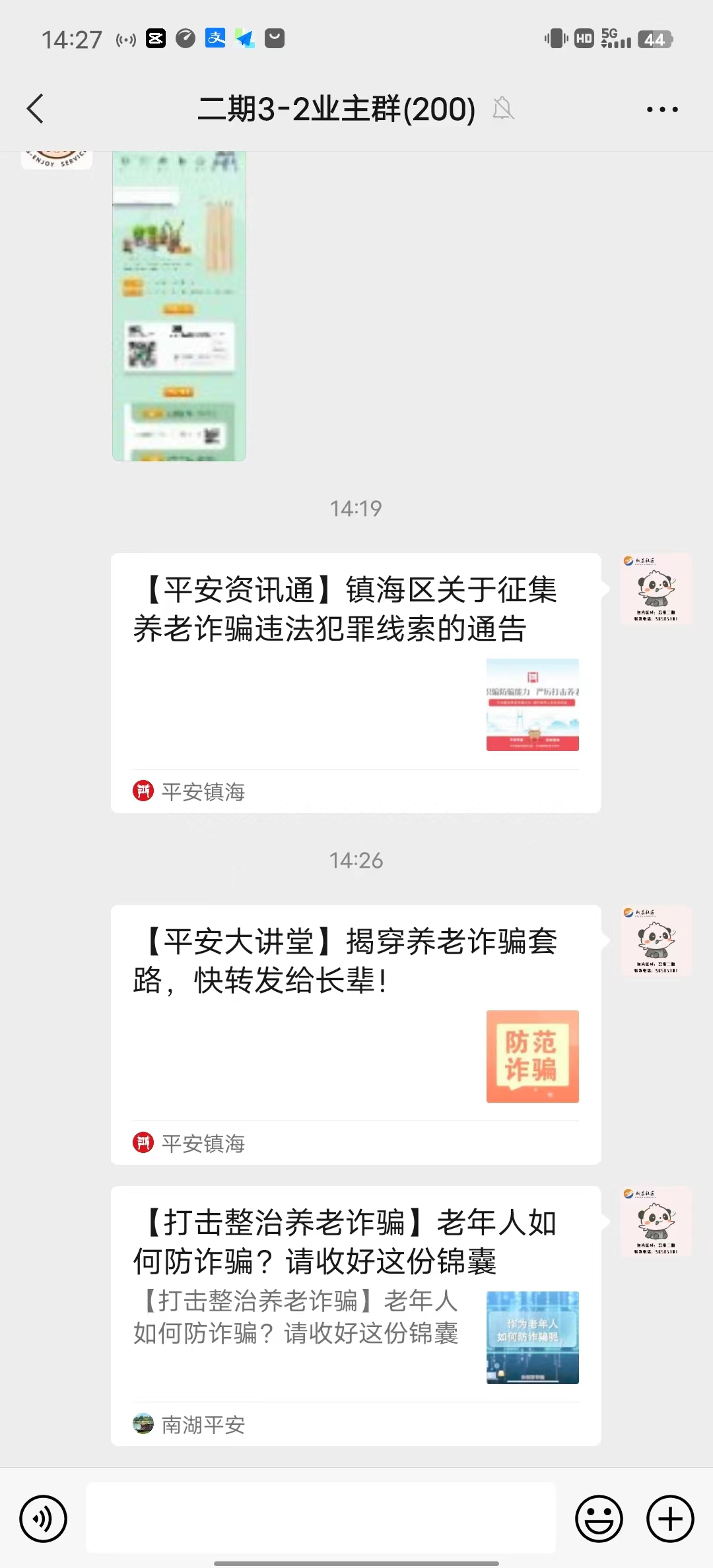 据悉,为了提高辖区内居民的反诈意识,新晨社区还通过各网格户外电子显示屏、横幅等大范围展现反诈宣传标语,同时利用社区微信公众号、网格群等多途径进行典型诈骗事例宣传,竭力守住网格内老年人的“养老钱”,为老年人安享幸福晚年营造良好的环境。