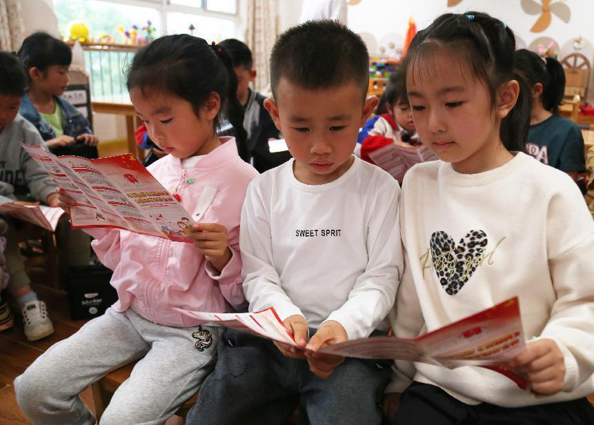 活动中,应律师采用多媒体课件、图片、案例等多种方式,帮助幼儿正确认知校园欺凌及暴力行为。在讲座中列举生活中父母买东西的微案例让幼儿知道法律的意义,同时借助绘本《别想欺负我》让小朋友在暴力和欺凌发生时学会说“不”,让每一名幼儿都清晰地了解暴力和欺凌的危害性,学习在发生危险时可以采取的自我保护措施。最后孩子们还认真阅读了应律师给他们的《民法典》及交通安全法律知识宣传单,在幼小的心灵中种下遵纪守法的种子。