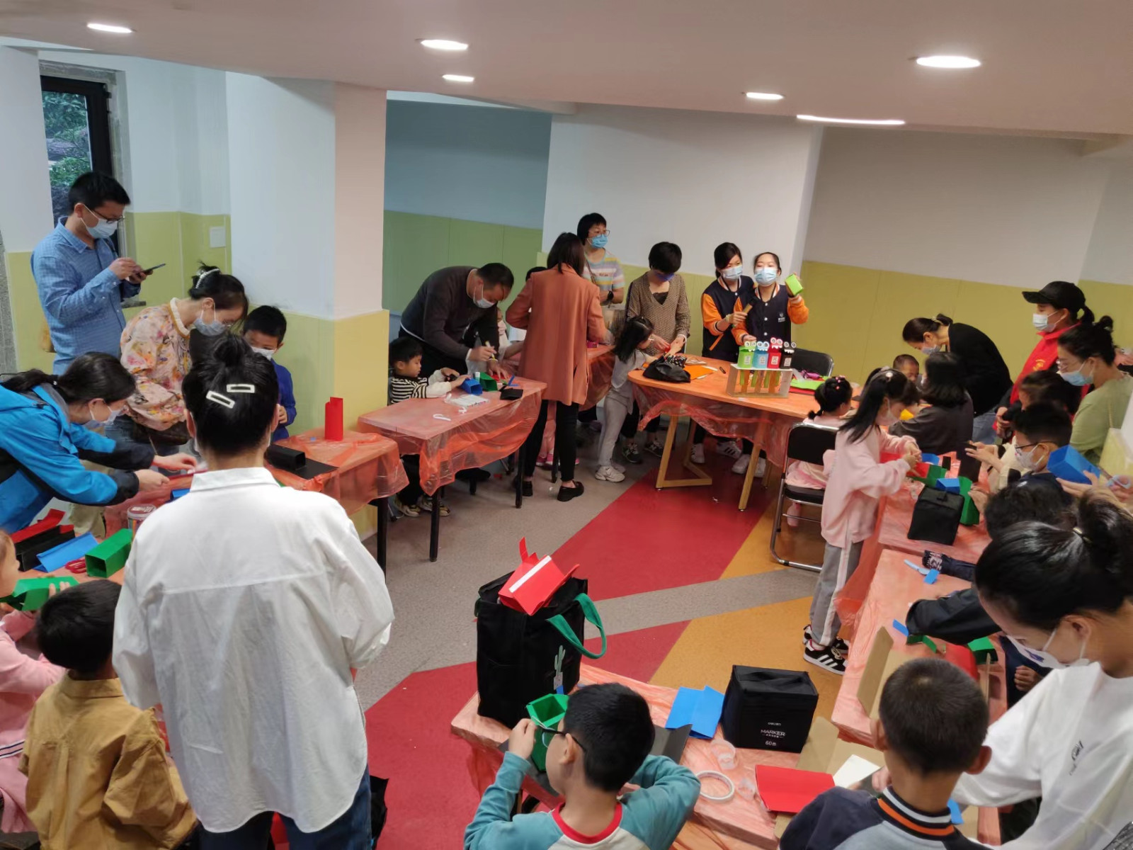 “快递箱、旧鞋盒、瓶盖......”在老师的示范和带领下,小朋友们利用自己带来环保材料开始动手制作有趣的垃圾桶,这边画一画,那边剪一剪,小朋友们虽然做的比较慢,但是动手能力还真是不容小觑,不一会就和家长一起制作出了一份份独一无二的垃圾分类四色桶。