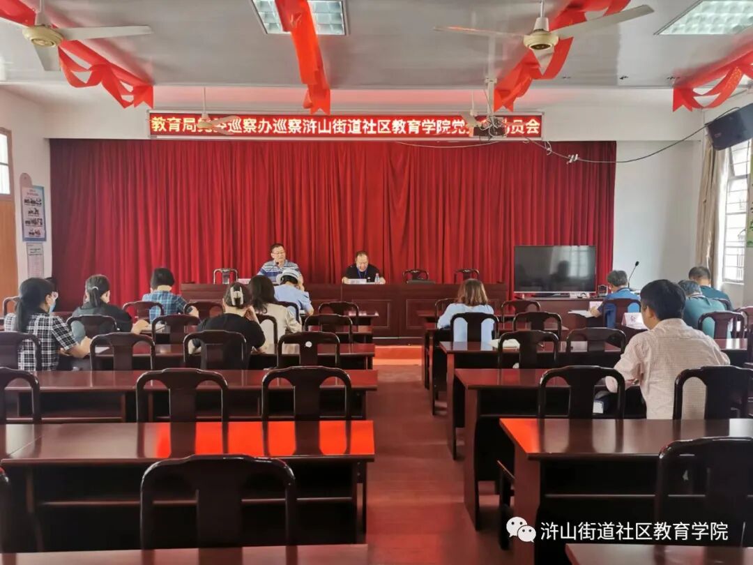 校长余明灿向巡察组作了《浒山街道社区教育学院党支部巡察工作报告》,反思了党建工作中的不足,提出了下步整改措施。余校长代表学校作了巡察表态发言。一是提高政治站位。坚决用本次巡察工作要求统一思想行动,主动配合巡察组开展工作;二是强化政治自觉。自觉接受巡察监督,实事求是反映情况,认真抓好整改落实;三是扛起政治责任。以巡察监督为动力把学校党建和学校各方面工作提高到一个新水平,以党的建设和学校创新发展向市教育局党委和巡察组交出满意答卷。