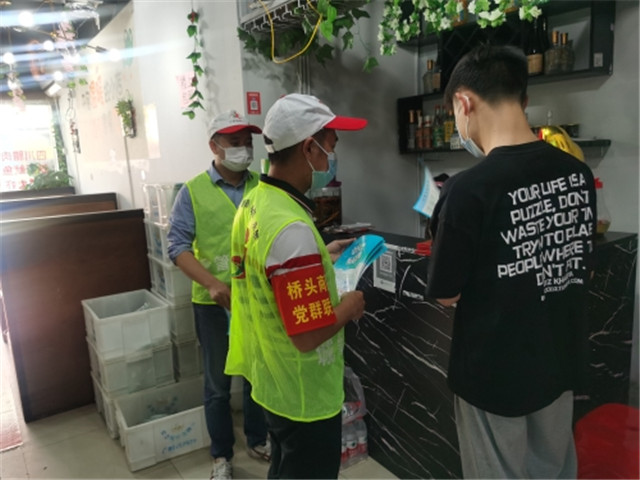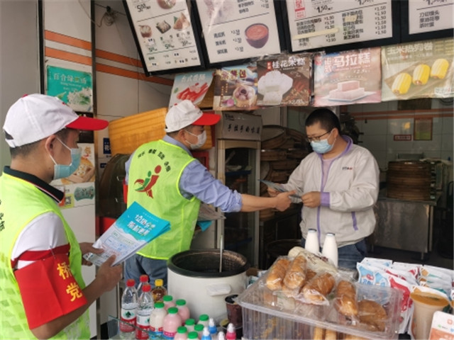 “老板你好,我是芦北社区‘薪聚力’志愿者,你看下这个是垃圾分类的宣传册,你们做餐饮行业的,平时要注意厨余垃圾的分类。”近日,一群身穿绿马甲带红袖章的志愿者走街入户,利用空闲时间进入商铺检查垃圾分类实效,宣传垃圾分类标准。