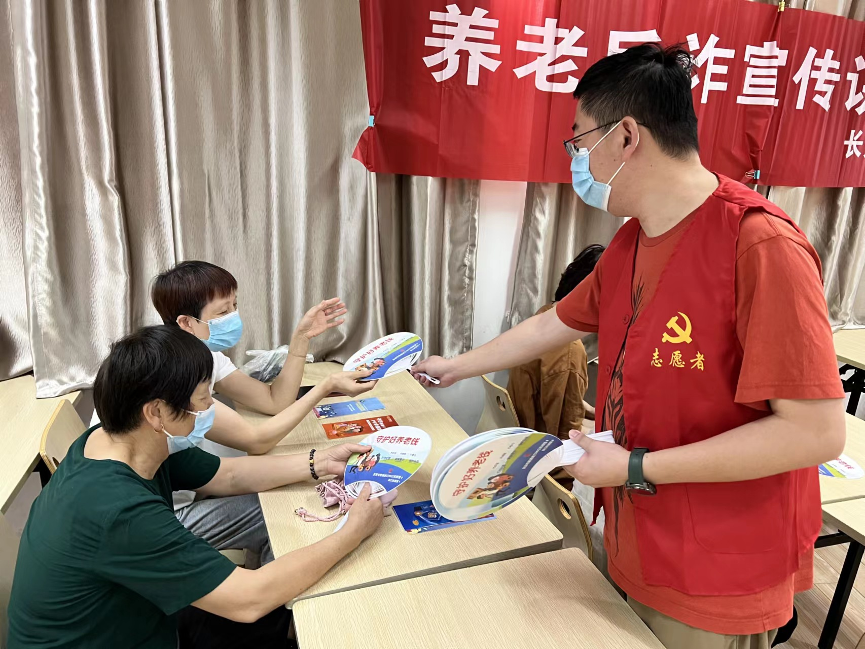 活动期间 ,社区网格长把印有反诈知识的宣传折页、宣传扇子分发给老年居民们;邀请银行志愿者通过案例结合的方式,深入浅出地向老年居民讲述了目前养老反诈常见的几种形式以及如何辨别诈骗、防止诈骗,重点围绕转账这一项,从金融行业的角度向居民们分享了养老反诈的专业知识。