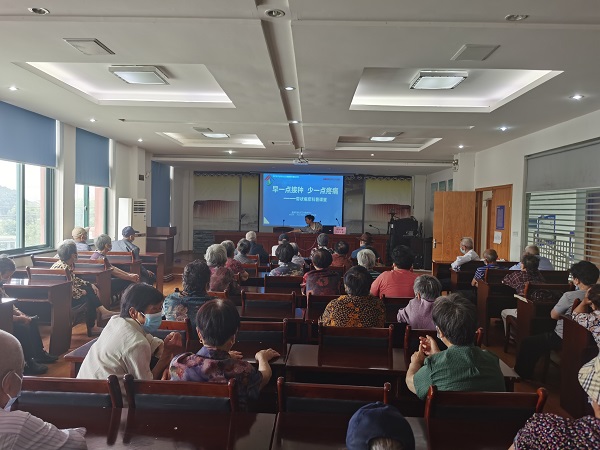 课堂中,俞医生就带状疱疹发病原因和易发人群、带状疱疹典型症状及可能导致的并发症、接种带状疱疹疫苗是预防带状疱疹的有效手段等3个方面详细介绍了带状疱疹的疾病医治和预防保健,告知大家带状疱疹并不可怕,要及时去正规医院进行治疗就会痊愈,不要相信民间的偏方,以免延误病情。最后,俞医生嘱咐大家日常生活中要劳逸结合,增加营养提高免疫力。通俗易懂的语言、图文并茂的案例让众多居民都深入了解了带状疱疹的相关知识,居民们纷纷表示会改正自己日常生活中的一些不良习惯。
