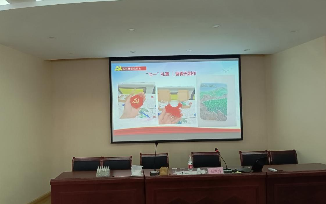 为喜迎中国共产党建党101周年的到来,今天上午9点,长兴社区党总支在社区大报告厅开展了一场“七一”礼赞,留香石制作活动。
