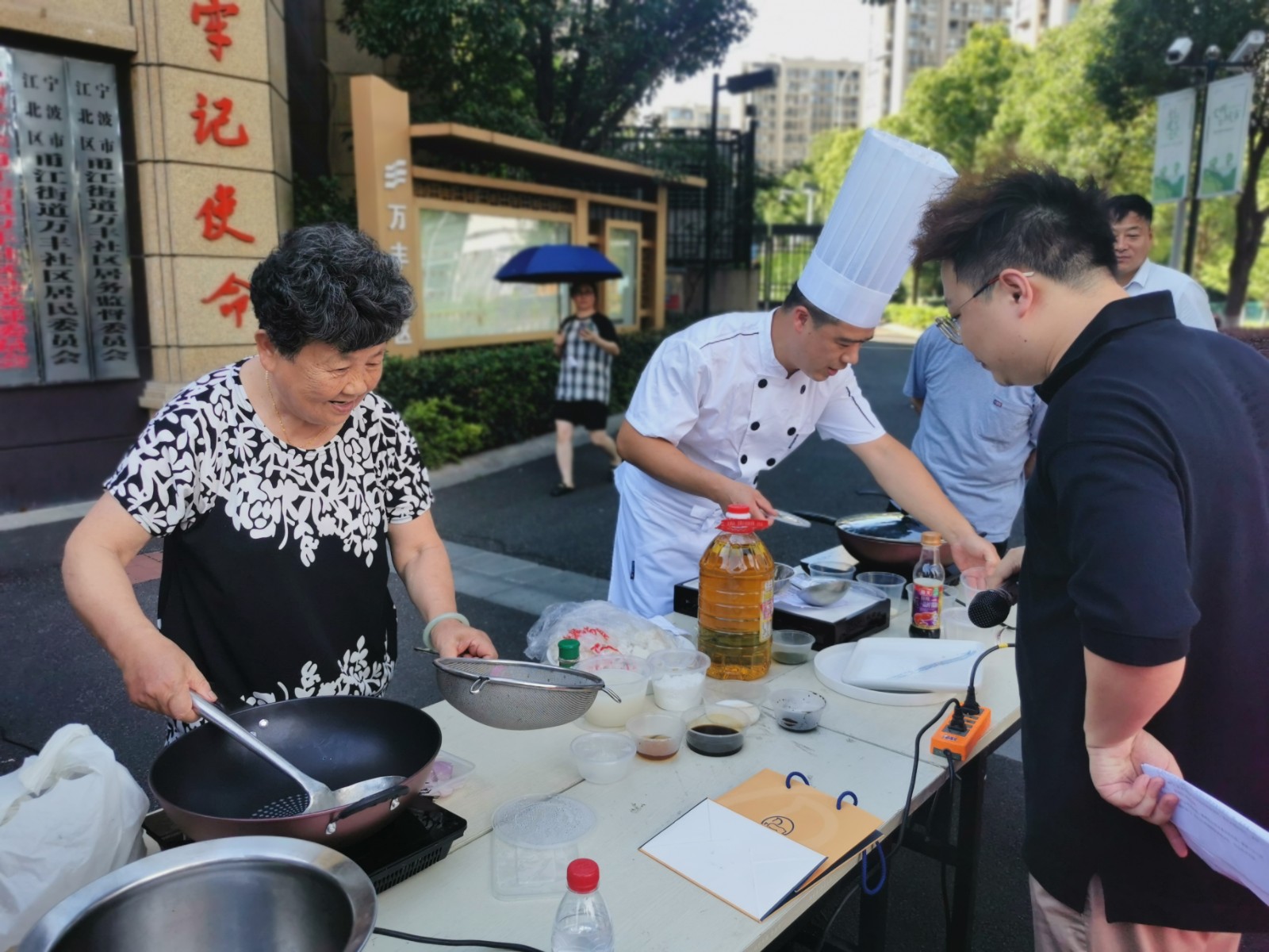 本次比拼由金港大酒店厨师长与社区民间大厨进行厨艺现场PK,制作江北十大碗中“慈城年糕炒白蟹”、“老外滩江白虾”两道菜肴。活动中,参赛选手按照色、香、味、形四项标准,充分发挥自己的精湛厨艺,挥铲舞勺大秀厨艺,整个厨艺比赛现场不时传来阵阵欢笑声。