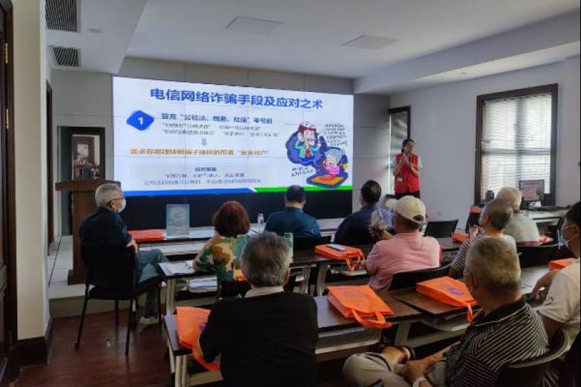 为提高辖区居民自我保护和安全防范能力,普及防范电信网络诈骗科学知识,6月28日下午,特邀高校志愿者来社区为老年居民作防范电信网络诈骗专题讲座。
