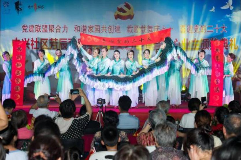6月25日晚,中兴社区开展“党建联盟聚合力 和谐家园共创建 载歌载舞庆七一 喜迎党的二十大”芳辰丽阳第二届文艺汇演暨爱心业主颁奖典礼。演出节目形式多样,不仅有男、女生独唱,舞蹈、旗袍秀等常规节目,还有黄梅戏、空竹等传统节目,更有葫芦丝、萨克斯等器乐演奏。他们以优美的舞姿、嘹亮的歌声热情讴歌新时代美好生活。同时举行了爱心业主颁奖典礼,进一步弘扬助人为乐、邻里团结的社会好风尚,提升社区正能量,共建和谐家园。整场演出精彩纷呈,现场热闹非凡,不仅凝聚了小区业主的正能量,也展现了广大居民良好的道德精神风貌,全民参与,共同营造了迎接党的二十大胜利召开的喜悦氛围。