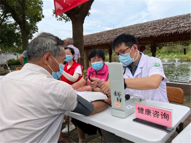 北仑区第二人民医院的党员沃静波医生在现场坐诊,为居民提供“家门口”的健康咨询。贴心地为居民检测血糖,耐心地为居民所说的各类常见病、慢性病等进行初步筛查和诊断。居民曹阿伯平时坐轮椅,去医院不太方便,“听说今天有义诊,我早早就赶过来了,在家门口就能找专家看病,太暖心了。”在看诊后,曹阿伯来到隔壁理发摊位,顺便理了一个清爽的发型。