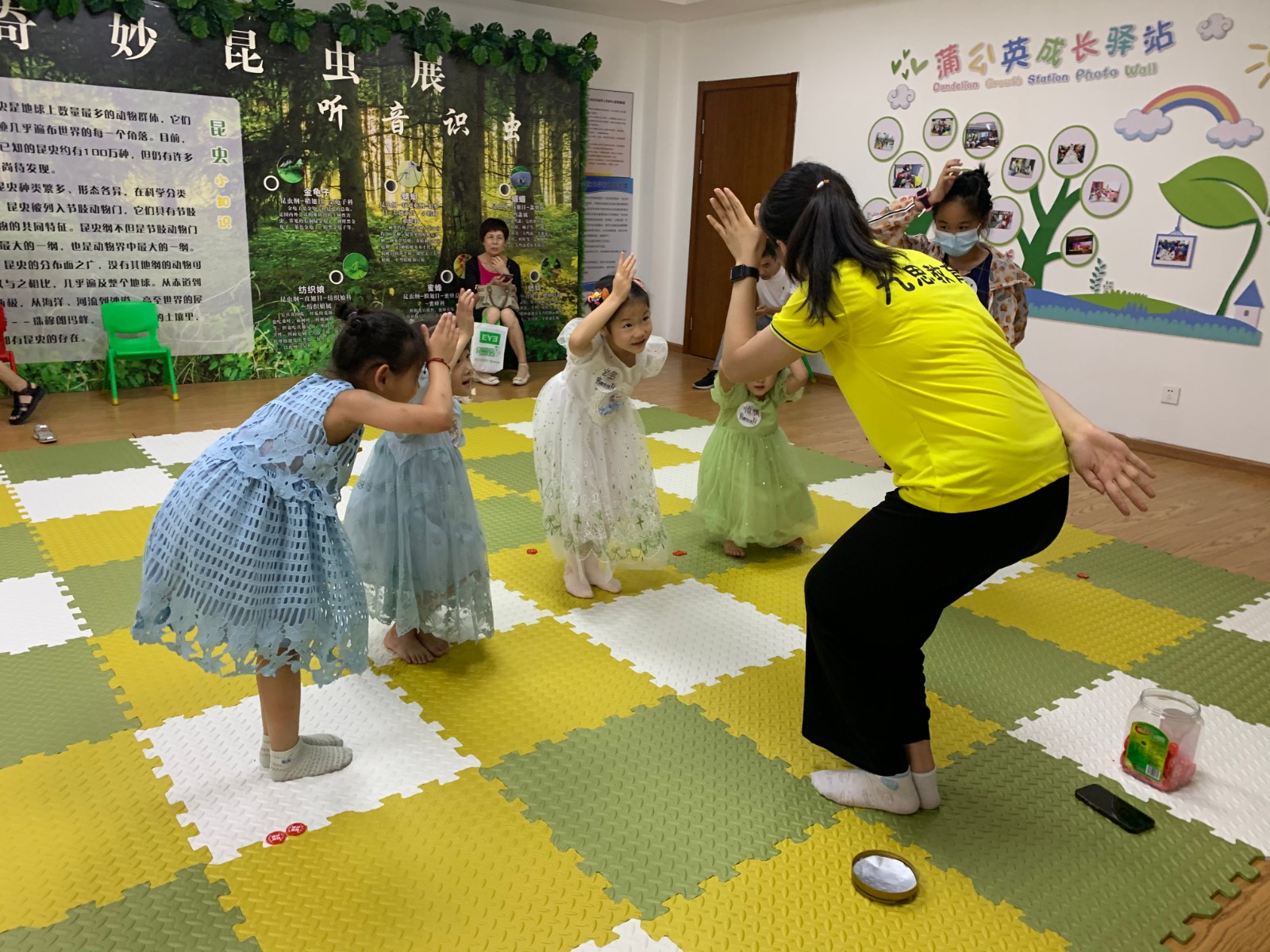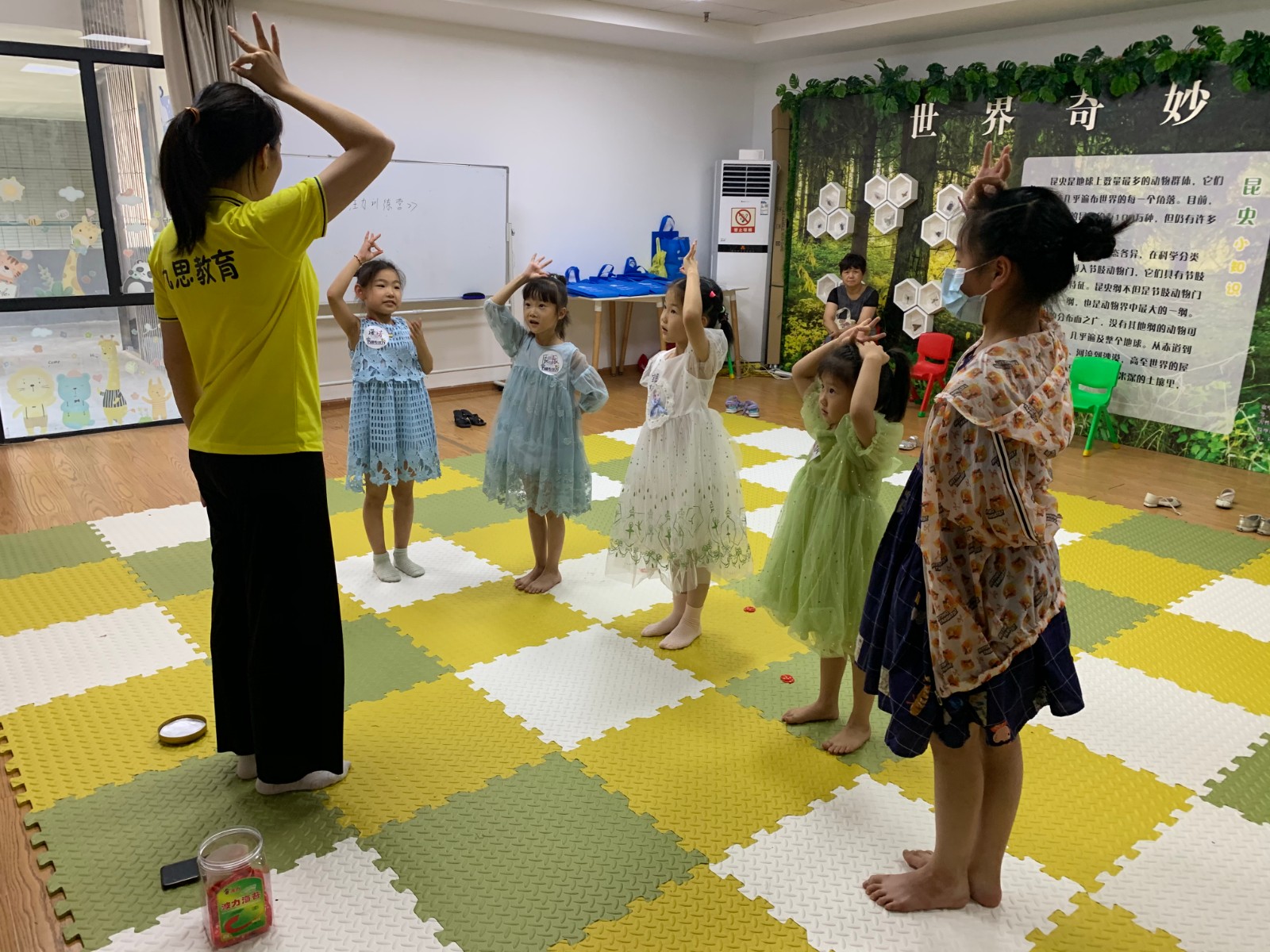 7月13日下午,“专心致志有妙招”儿童专注力训练营第一期开课啦,小朋友们提前来到活动场地互相熟悉。来自九思·金海豚的橘子老师先给大家带来了一场破冰活动——小鸡进化论。小朋友两两一组,通过剪刀石头布的形式,从鸡蛋一步步升级到鸡、凤凰、人、圣人,小朋友们在游戏中逐渐熟络起来。每当小朋友表现好时,还会有海豚币奖励,海豚币可以在活动最后兑换小朋友喜欢的小礼品。