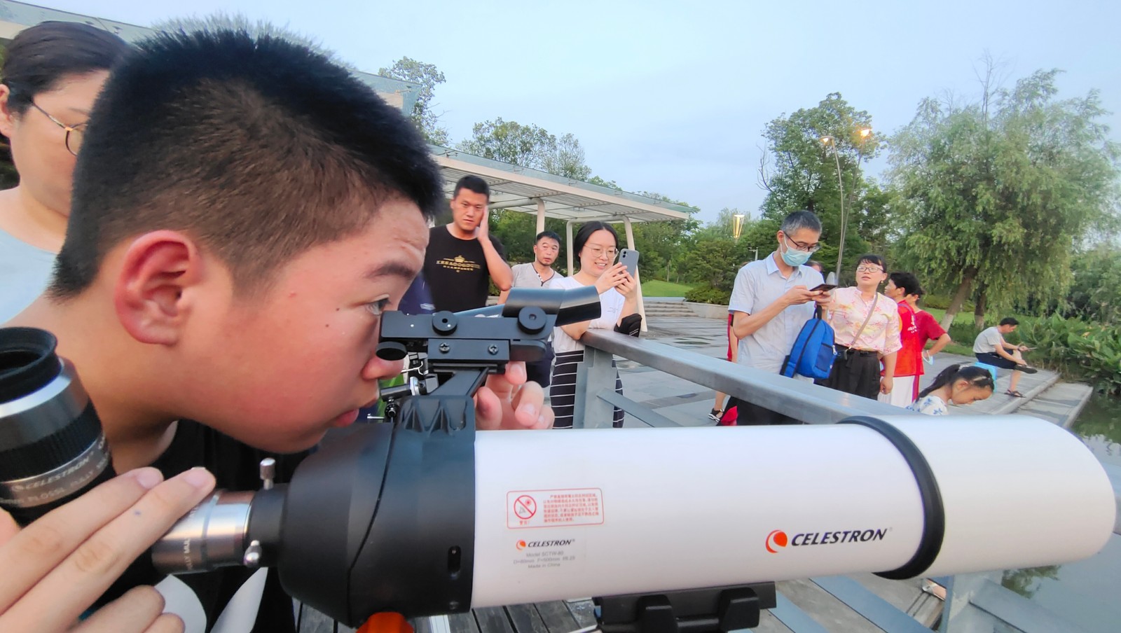 活动中,首先,伴随着《荷塘月色》的轻音乐,主持人从“明月几时有?把酒问青天”作为开场,介绍了年度最大最Super的超级月亮。其次,王教授盘点了古诗词中的月相,为青少年解密了什么是“超级月亮”,借助古诗词了解上弦月、满月、下弦月、残月、月相的周期变化,并向青少年讲述了超级月亮的定义、月球的基本特征、起源,鼓励青少年发现夏夜中最亮的星。13日19时左右,随着最后一缕晚霞淡去,一轮满月“爬”上甬城的夜空。科普站工作人员对天文望远镜进行了组装,并向青少年讲解了天文望远镜的构成及各部分作用。组装完成后,引导青少年有序进行观测。青少年对“超级月亮”充满了期待,观测过程中传来阵阵惊叹:“望远镜里的月亮好大好圆,真漂亮!”部分小朋友提出了许多的疑问,王教授耐心进行解答。21时后,月明星稀,终于露出了“全貌”,青少年恋恋不舍的离去,纷纷期待下次天文科普活动。