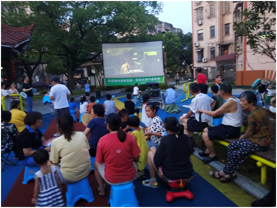 为进一步满足社区居民的精神文化追求,提升居民幸福指数,积极营造和谐美好的社区文化氛围,双东坊社区组织为居民放映了一场露天爱国主义电影——《八佰》。