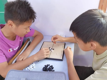 在此过程中,每一位老师与学生共同参与,产生了热切的火花:或是讨论着作业的难题,或是轻声朗读着课本,抑或是交流着游戏的要点。辅导期间,教室中洋溢着浓厚的学习氛围,学生和小老师们自主开展了个性化活动。同学们在认真完成暑假作业的基础上,做着自己喜欢的事情:有的在进行着五子棋比赛,有的在练习着书法……