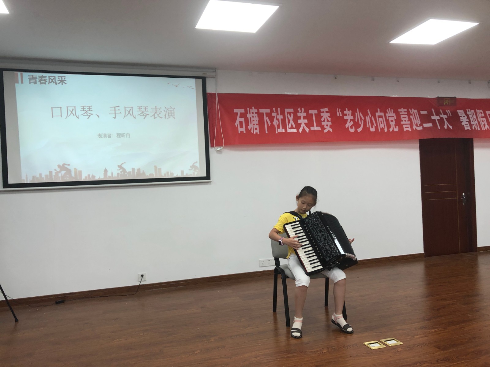 为丰富暑假假日学校学员的文化生活,增强他们的爱国情怀。18日上午,石塘下社区关工委组织开展“老少心向党 喜迎二十大”暑期假日学校结业文艺汇演,共有30人参加了此次活动。