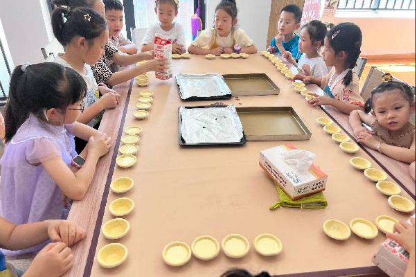 7月21日,东信路社区为辖区孩子们带来了一场“童趣烘焙,乐享暑期”的烘焙活动课。在烘焙室里课程开始,志愿老师为孩子们分发烘焙材料,讲解做法技巧和小知识点。孩子们认真观看老师示范,一个个跃跃欲试,课堂氛围热烈。在老师的帮助下,孩子们尝试了自己动手制作蛋挞,按照步骤和提示,一步步完成并将蛋挞送进烤箱,耐心等待它们的出炉。让孩子们从中学习烘焙知识并感受自己动手的辛劳。