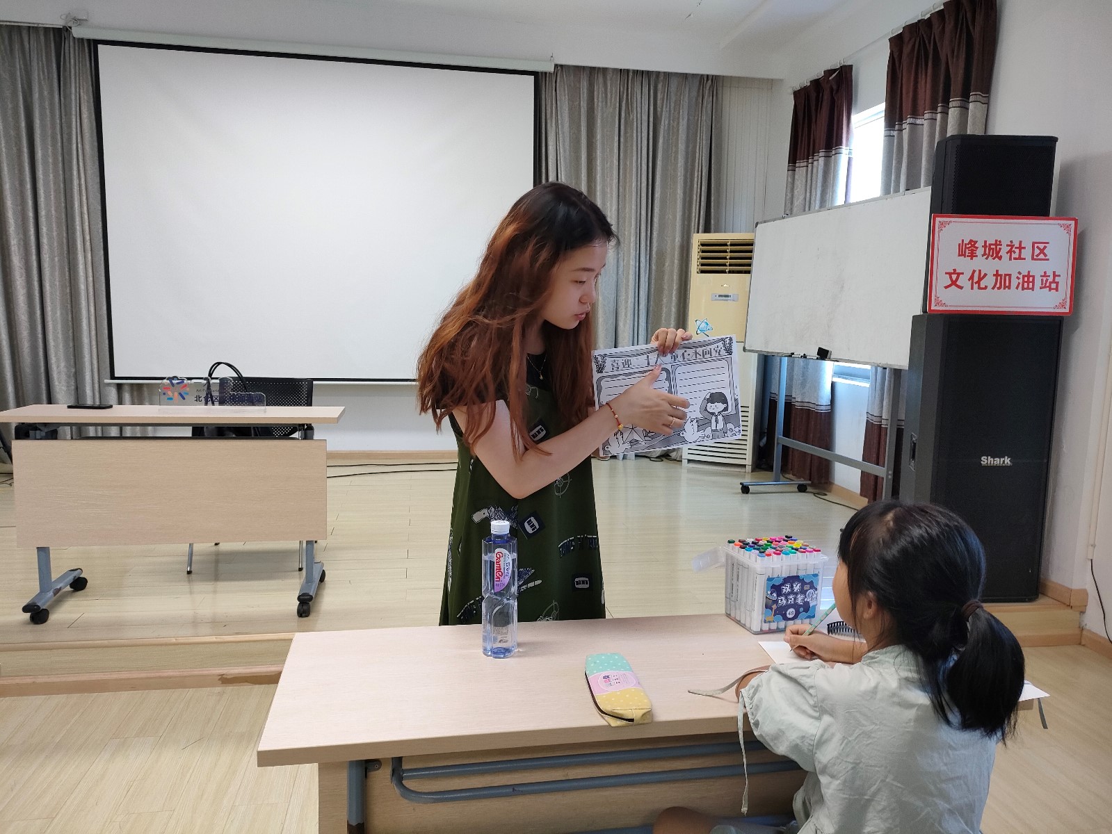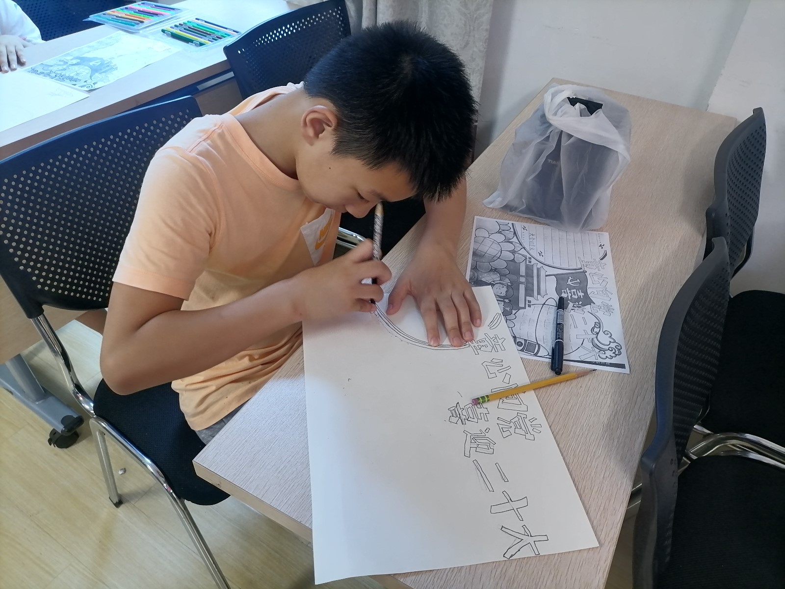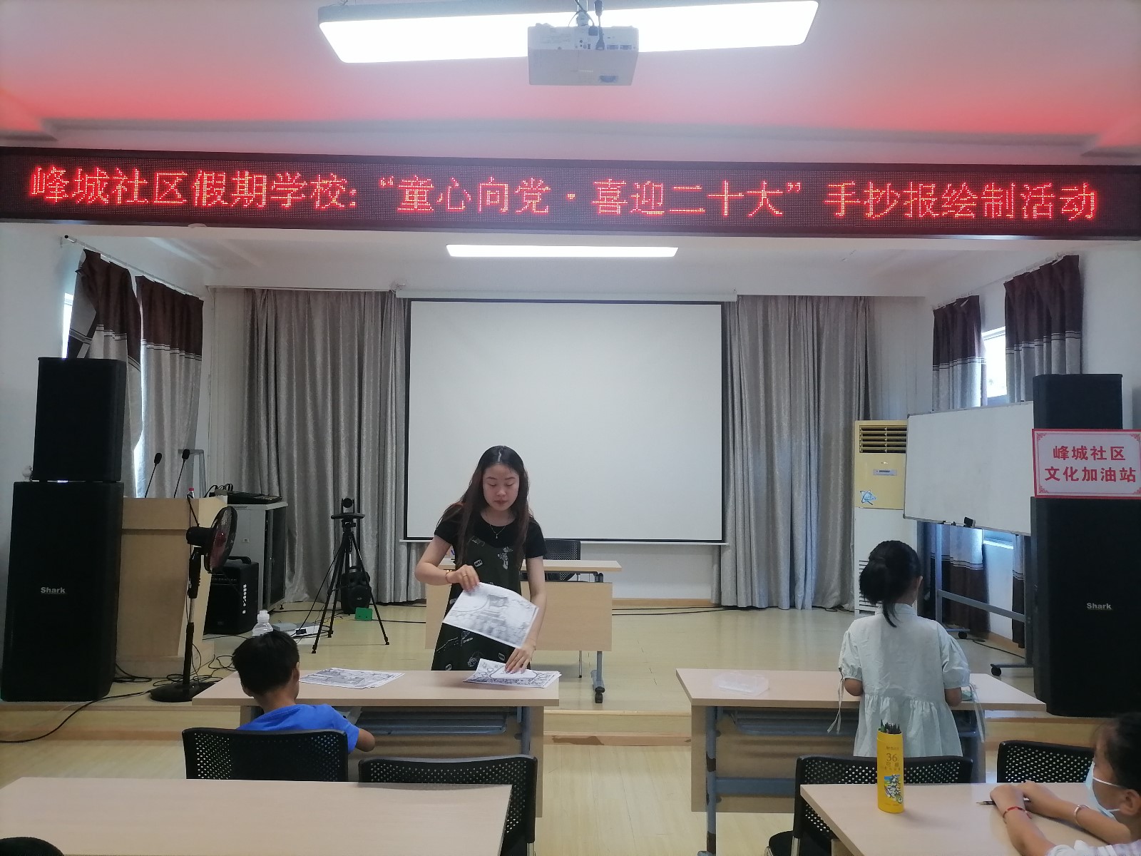 7月27日上午,峰城社区假日学校邀请区文化加油站俞梦露老师,组织辖区青少年开展了“童心向党·喜迎二十大”主题绘制手抄报活动,教育引导孩子们从小树立听党话、跟党走的坚定信念。