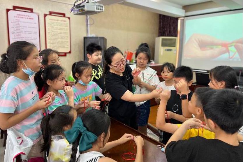 悠悠古韵,千千结艺。为展现非遗魅力,7月27日下午,金泉、灵岩社区假日学校特意为小学员们准备了一堂金刚结编织课程。