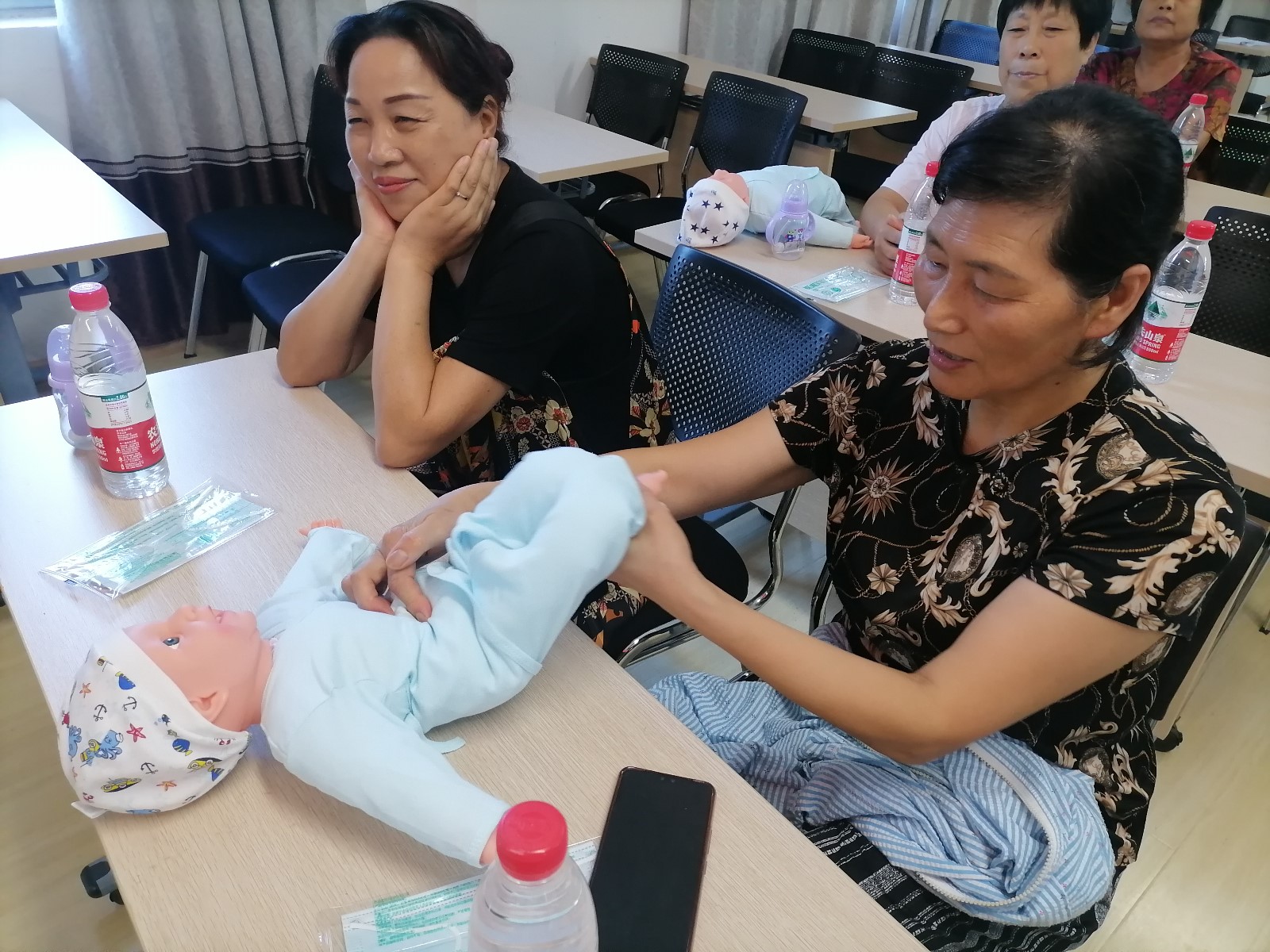 课堂上,社区计生协高级育婴师首先给大家普及了正确科学的养育知识,告诉大家正确的科学养育可以充分发挥0到3岁孩子的潜能,使孩子从心理、生理以及社会情绪各方面达到最完美的状态。随后进行养育实操指导,培训老师带来了婴儿模型、婴儿衣服、奶瓶、尿不湿等诸多育婴师道具,手把手教大家如何喂养新生儿、如何给婴儿抚触等育婴师日常工作,大家认真听讲,做好笔记,积极配合老师完成学习。