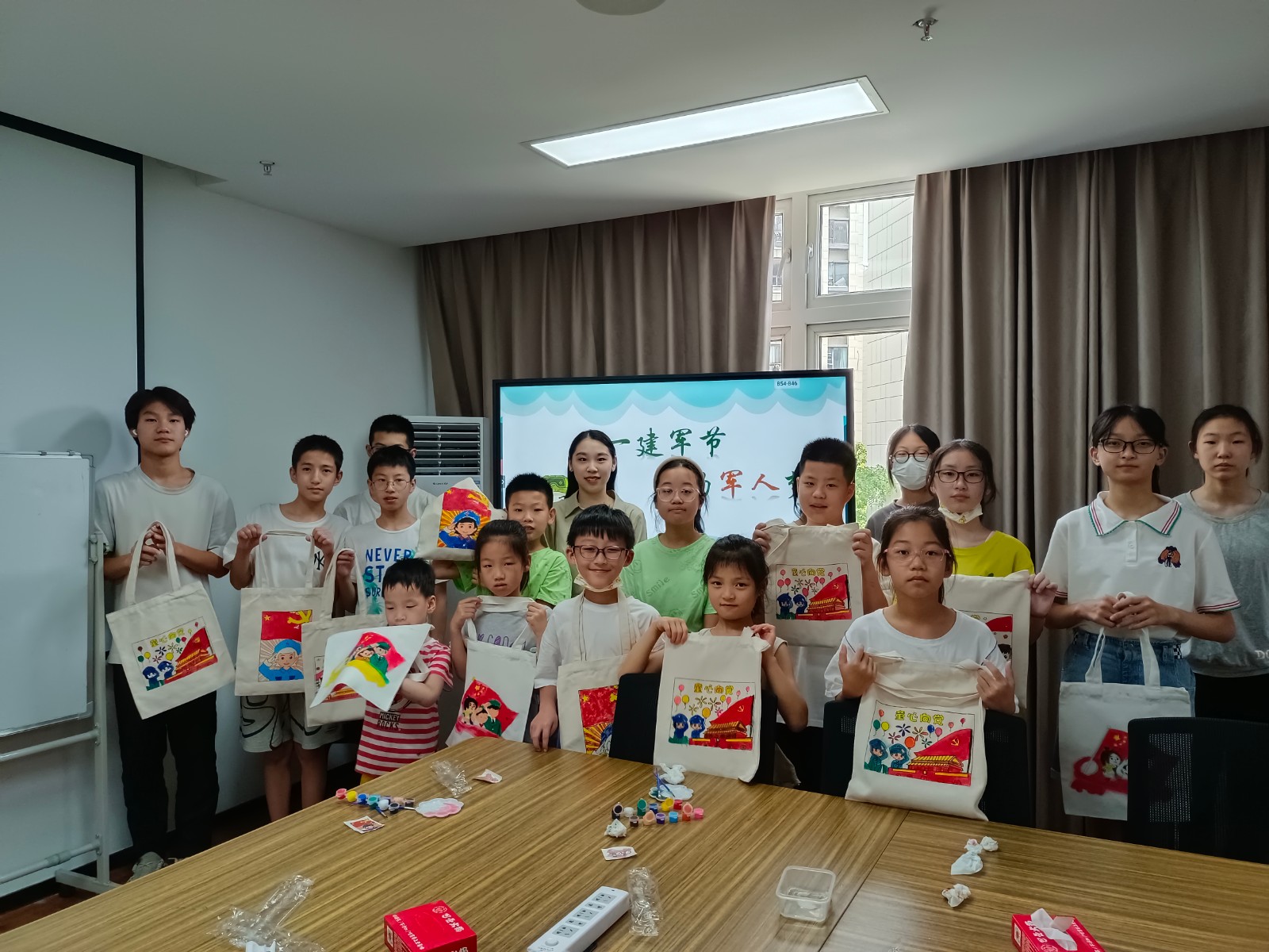 之后是极受青少年欢迎的环保帆布包DIY活动,未来盛园网格长为大家分发环保帆布包、颜料、画笔等材料,大家挑选好自己喜欢的建军节主题图案,网格长便向青少年详细介绍了彩绘帆布包的材料使用、制作方法、绘画技巧以及注意事项。青少年们根据自己的喜好全神贯注地在帆布包上画图案、勾勒线条、涂颜料,创意十足,青少年之间也互相探讨、相互协助。经过一个小时的创作,一幅幅图案精致、色彩鲜艳、独具特色的建军节主题手绘帆布包“出炉”啦!青少年开心地展示着自己创作的作品,承载着自己的军人梦,并以此向最可爱的人致以最诚挚的节日问候和崇高敬意。