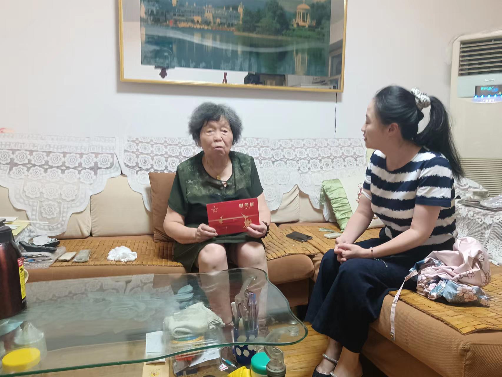 为了加深军民鱼水情,切实让烈士家属感受到党和政府的关爱,在第95个“八一”建军节来临之际,8月1日上午,外滩街道经济科徐主任走访慰问烈士家属张亚琴,为她送去党和政府的亲切关怀和美好祝愿。