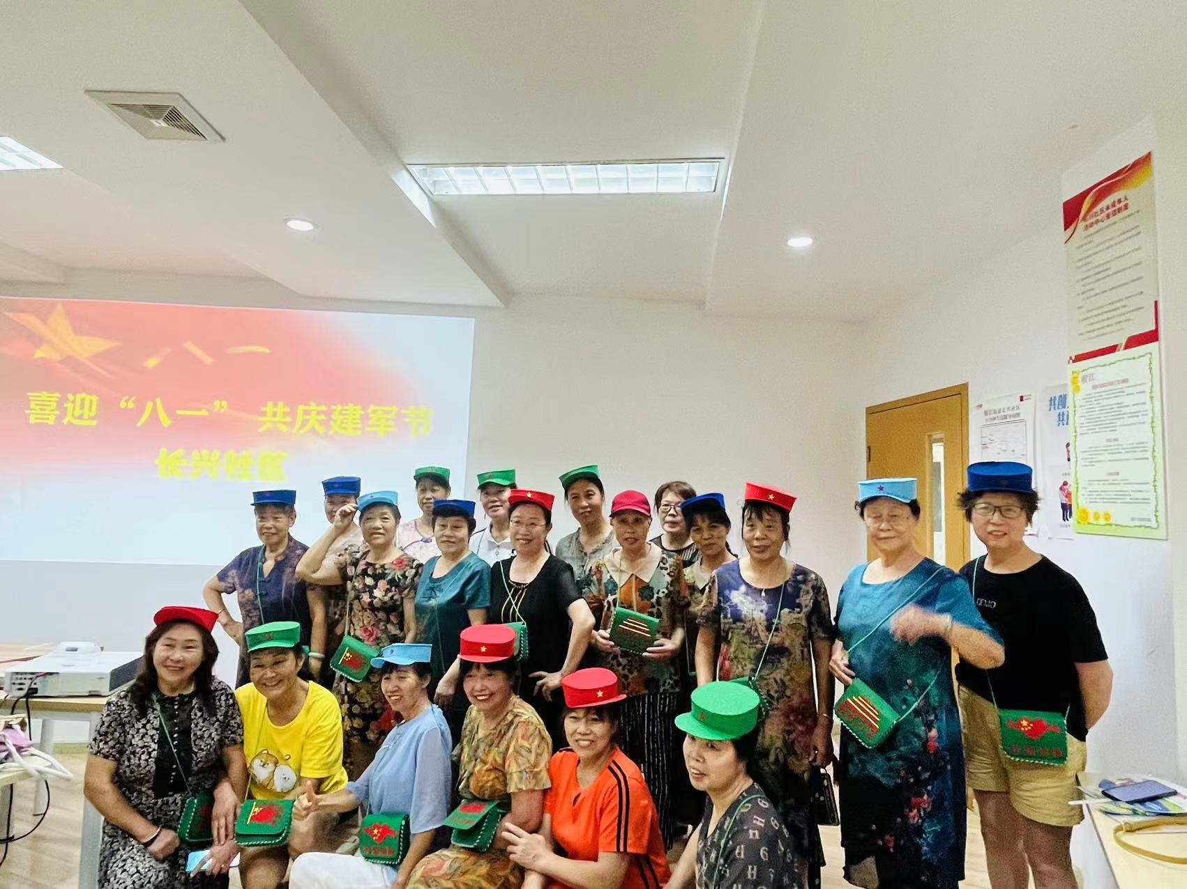 本次活动邀请了18名现役兵、退伍老兵的家属共同参与,活动现场,工作人员介绍了建军节的由来,并感谢军属们为祖国的伟大建设做出的贡献。活动现场手工老师与军人家属们一起制作了可爱的小军包与小军帽,热闹非凡,歌声、笑声、掌声交织在一起,唱响了军爱民、民拥军的军民鱼水一家亲的深厚情谊。最后,在《我和我的祖国》的背景音乐下大家一起拍照留念。