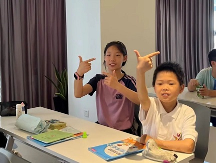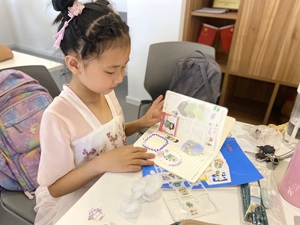 经过了一天的休息,孩子们调整好自己的状态,以最积极热情的姿态投入到今天的学习任务中。活动已经过半,大家更加珍惜在一起的时光,孩子们学习也更加地认真努力。高效率的学习之后是轻松活泼的课间游戏环节,教室变得热闹非凡,孩子们都在干什么呢?大孩子们围在一块和老师一起探讨难题,他们扶额思考,大脑飞速运转;女孩子们开始制作“手帐”,她们细细地将贴纸和便签剪开,并加以绘画制作;还有的孩子则在认真看书,他们在刘慈欣作家的作品中尽情地徜徉。