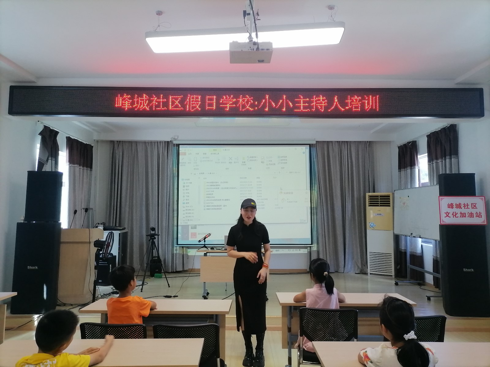 为丰富社区青少年的暑期生活,进一步锻炼青少年的表达能力,8月3日上午,峰城社区假日学校举办了“小小主持人”培训课活动。