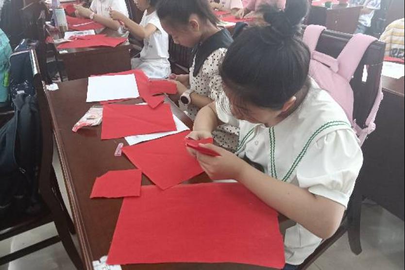 活动开始,徐老师介绍了剪纸的方法和技巧,并对剪纸文化进行科普,使大家了解剪纸的艺术特色。随后,老师从折叠到剪法,一步一步进行细致地讲授。在掌握了"折、画、剪"的小窍门以后,小学员们迫不及待地拿起剪刀和彩纸开始学习。裁纸、折痕、裁剪……从简到繁、从易到难,在老师的悉心帮助下,小学员们一手拿着剪刀,一手拿着纸,个个神情专注,剪出了一个个漂亮的窗花。
