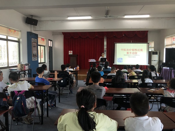讲座中,刘医生通过ppt,从近视的危害、近视的预防进行讲解,并重点讲解了近视的中医干预(贴耳穴),从中医的角度防治近视。讲解图文并茂、绘声绘色,孩子们也听得津津有味。科普完知识,刘医生就如何正确寻找眼保健操穴位提供现场指导,并给戴眼镜的近视小朋友进行了耳穴压豆。讲座的最后,刘医生还讲解了夏日防蚊虫的相关知识,介绍了古人防蚊的用具及用品,着重强调了了中药驱蚊的好处,让在场的小朋友都受益匪浅。