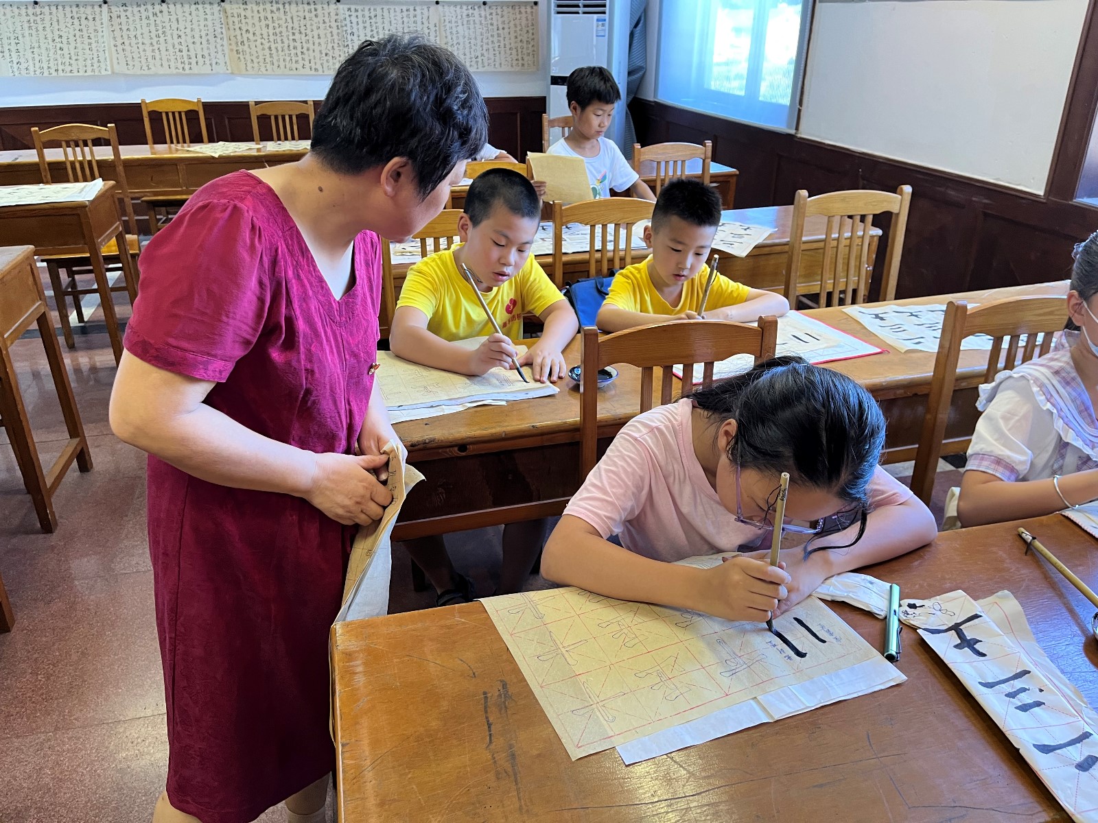 峰城社区假日学校:翰墨书香助成长书法课堂
