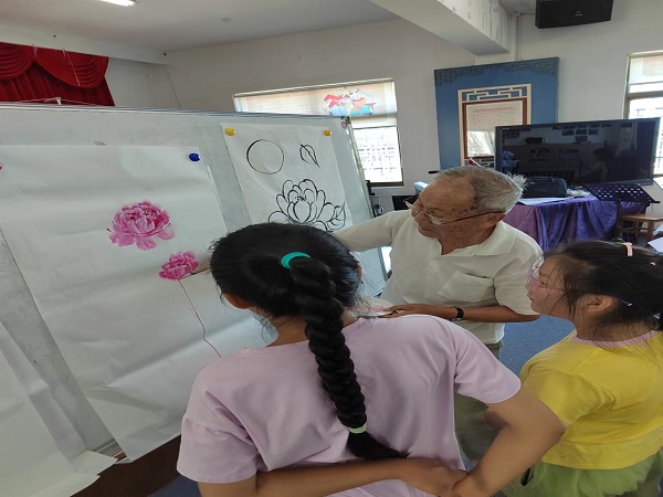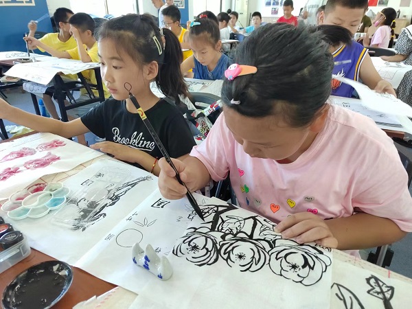 学国画是一件非常陶冶情操的事情,不仅能解放人的天性、给人带来满足感、成就感,而且还会在作品中实现对自我的肯定。8月10日上午,书画协会的戴源鑫老人给假日学校的小朋友们上了一节国画课,传授经验,讲解技巧,现场示范,零距离交流,通俗易懂的语言、轻松愉悦的氛围,让小朋友们在感受中国文化博大精深的同时进一步培养自身的审美、专注力、创造力。