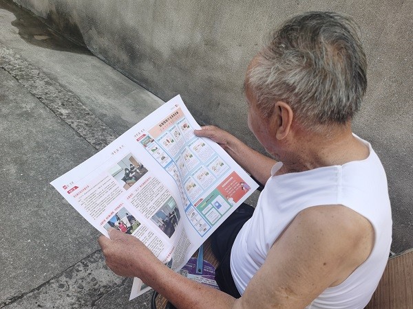 家住礁碶老年房的於大伯是社区报的“忠实粉丝”。每次到了报纸出刊的时候,他都会第一时间领取阅读。有时候晚了几天他还会专门来社区询问。“每一次的报纸都能给人不一样的惊喜。这次报纸的民生版面特别贴合我们老年人,一张漫画一个故事,不仅有趣还特别直观,真的是不错!”拿到新一期的报纸后,於大伯一边翻看着报纸,一边与乘凉的邻居们讨论报纸的内容。