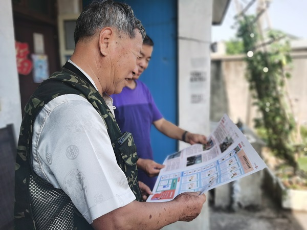 “老贺,快看新一期的报纸,这漫画说的电信诈骗不就是之前你接到的电话内容么?看吧,幸亏我提醒你不然你就要丢钱了。”在陈华浦社区西区老年房,退役军人张仁斐正在向居民分发新一期的《陈华浦·巷闻》,并向居民介绍本期报纸的内容。