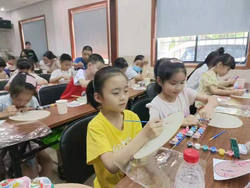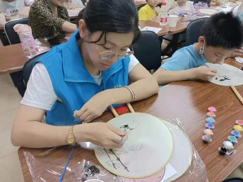 虽然炎热夏日,但依旧挡不住孩子们的热情,他们早早来到社区活动室等候。活动开始后,志愿者老师首先为小朋友们科普了华夏民族千年的折扇文化,并告诉他们,折扇作为一种民族文化,兼具艺术性和实用性。而后,志愿者耐心地为小朋友们讲解了扇子绘画的方法和技巧,并展示出绘好的团扇。讲解结束后,孩子们纷纷忙活起来,不一会儿,一幅幅充满创意的扇子画呈现在大家面前,有的扇子上画着校园,有的画了荷花,有的画了燕子等等。
