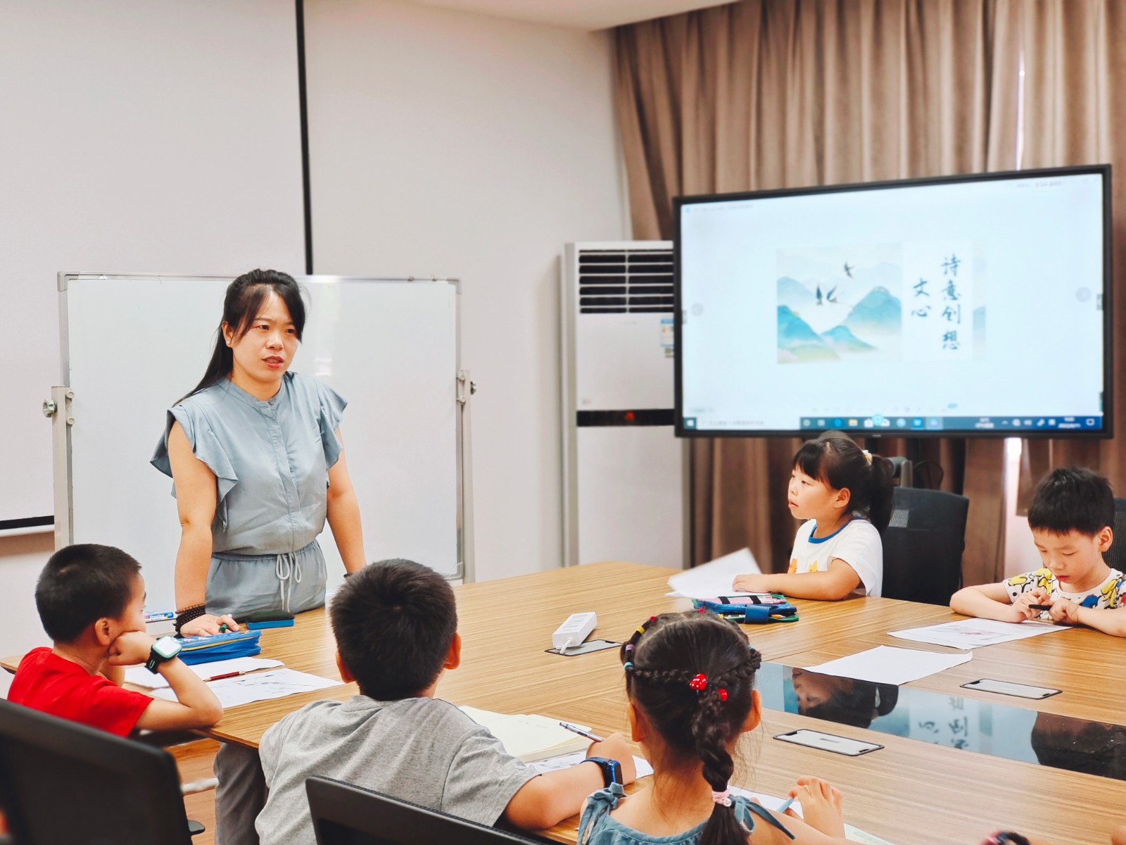 活动邀请了文心读写馆创始人兰心老师授课。青少年看着网格长发放的诗歌图文“人间三月天”,跟随着兰心老师一起进入了诗歌的世界。“反常搭配”这是个让青少年陌生的词语,也让他们充满疑惑与好奇,兰心老师运用举例的方式,由浅入深为大家解释词义并说明如何运动,生动的讲解令青少年们茅塞顿开。从诗歌语言的反常搭配到实写虚写的运用;从引导青少年一次次的想象到提笔创作一篇篇诗歌,兰心老师互动频频的授课方式让青少年受益匪浅,更让他们记忆深刻。