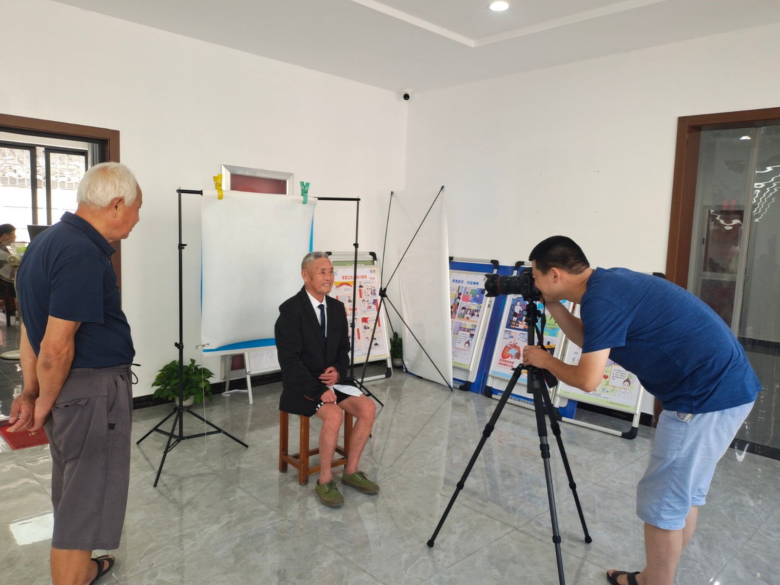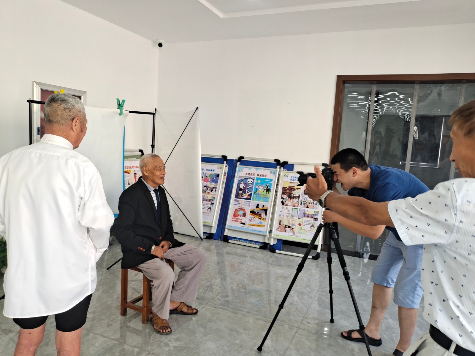 照相活动得到村里党员们的一致欢迎,特别是老党员。老党员们虽然年事已高,身子佝偻着,但一坐到拍照位置,老人就努力挺直腰杆,对着相机仔细整理自己的衣服、头发,目光坚定地看着相机,还不忘问:表情好不好,站姿对不对。