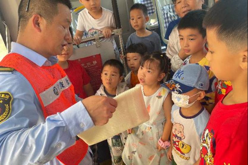 活动中,来自公交公司的宣讲员以车厢为“课堂”,为参与此次活动的小朋友们讲解了乘坐公交车时需要注意的安全问题,介绍了灭火器、逃生锤及车门应急开关的使用方法,并在现场进行了展示和演练,教会同学们在乘坐公交车时遇到紧急情况如何快速逃生和自救。同时,发出文明绿色出行倡议,倡导青少年践行文明绿色出行,做文明绿色出行宣传者。