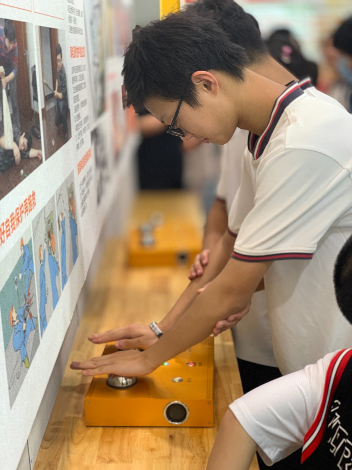 首先基地的老师带领孩子们参观体验了模拟灭火、触电体验、心肺复苏训练、消防模拟逃生通道,最后由沈方军老师,为小朋友们开展了一场消防安全培训。