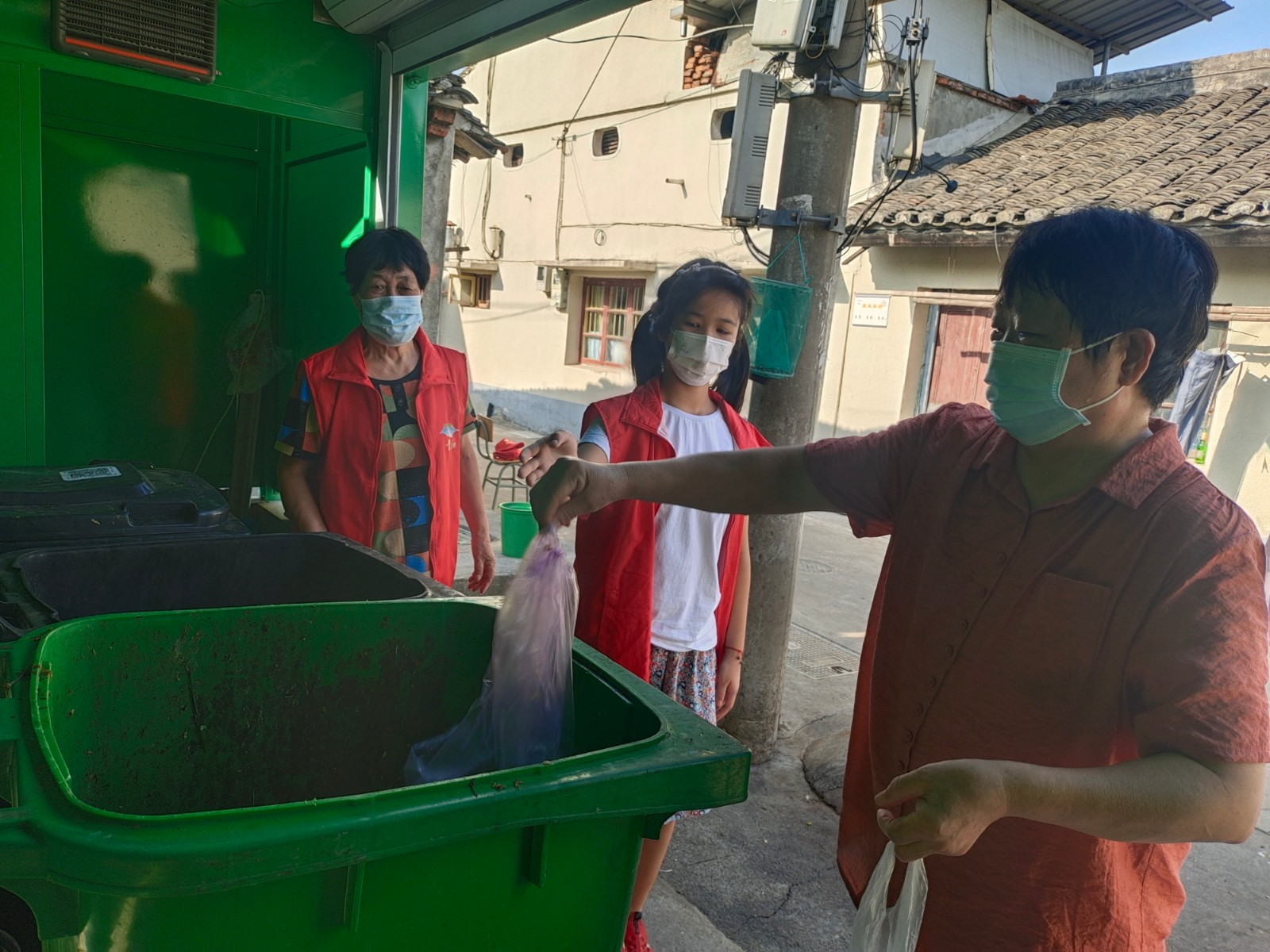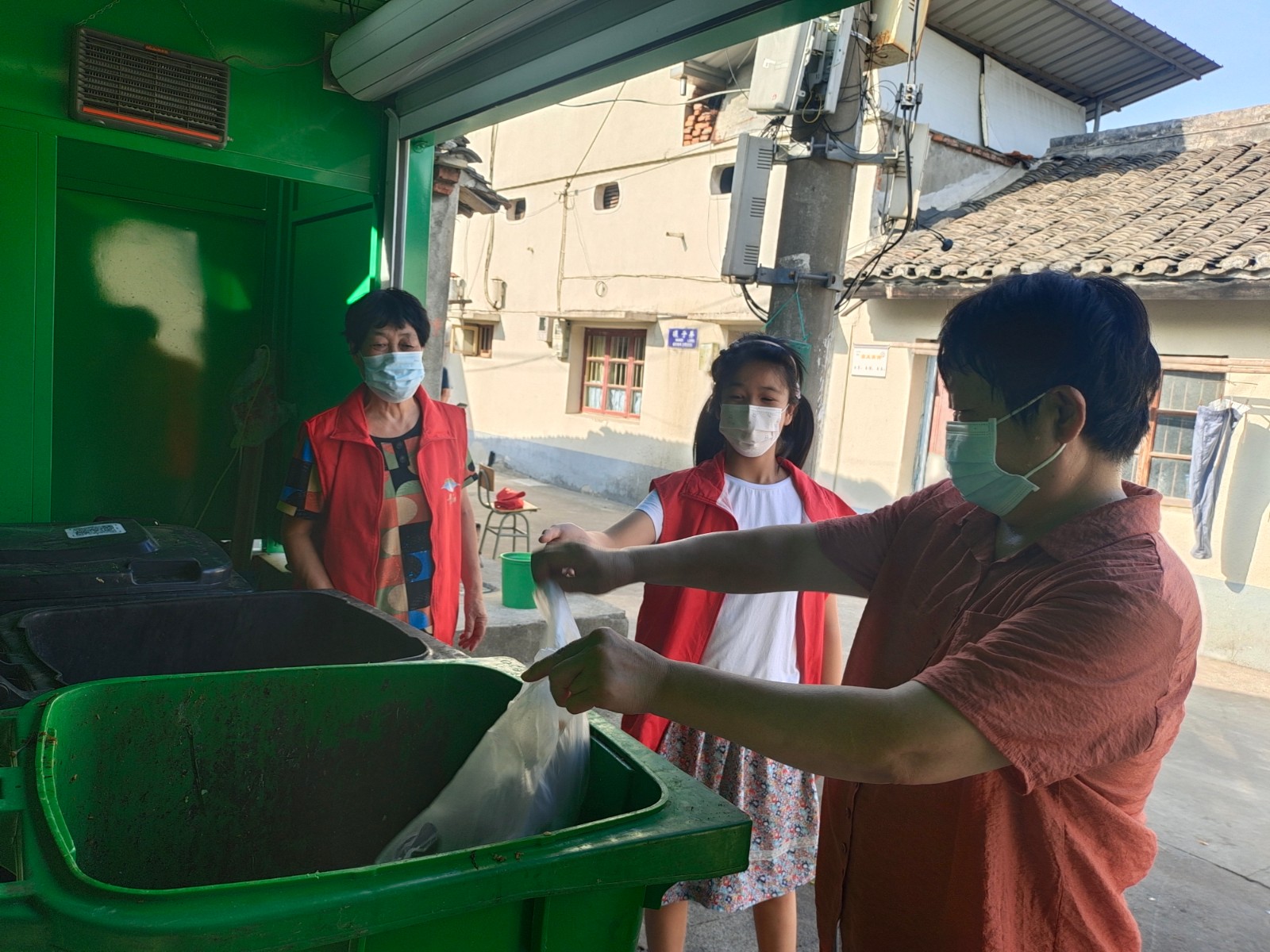小志愿者们身穿小红马甲,个个奋勇向前,发扬不怕热、不怕脏、不怕累的精神,在垃圾分类亭,为前来扔垃圾的村民进行指引,先根据自己的认识辨别属于哪类垃圾,再把垃圾投进分类垃圾桶里。用实际行动彰显着少年志愿者的风采,为这座城市的文明建设添砖加瓦。