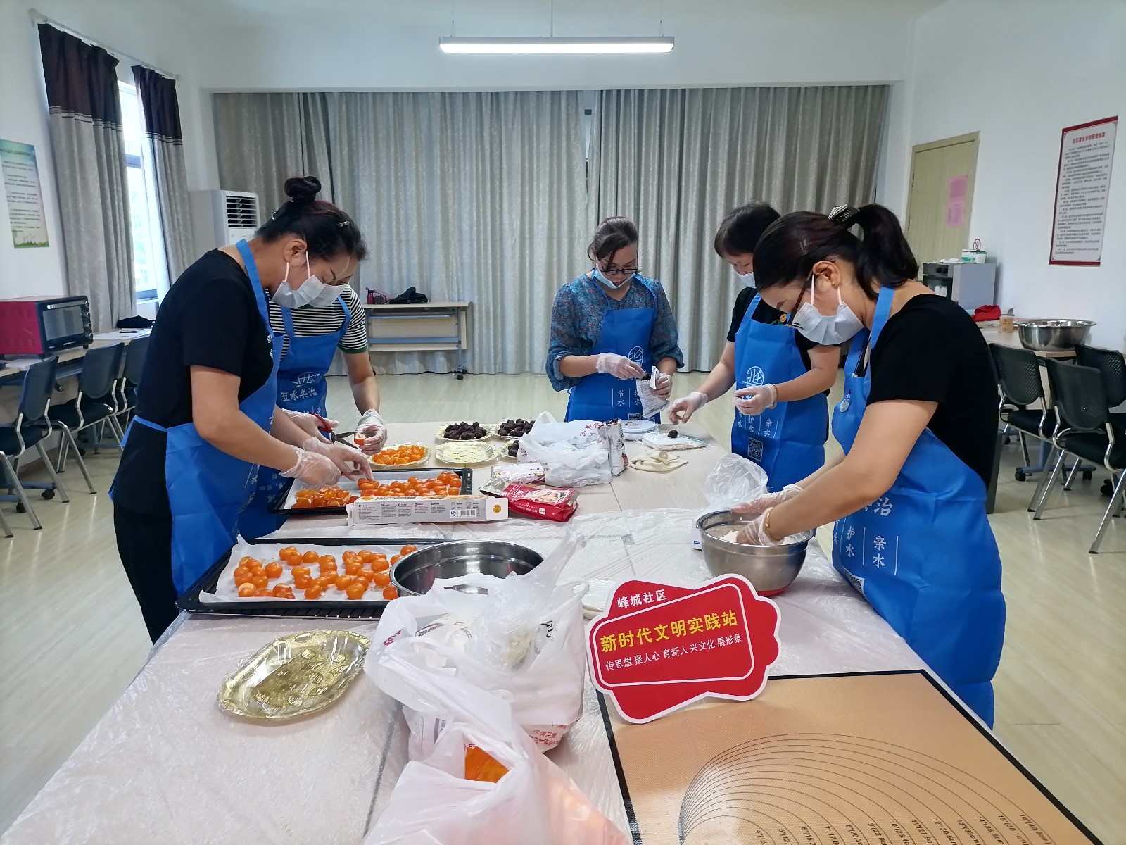 忆对中秋丹桂丛,又是一年中秋佳节。9月6日下午,峰城社区党群服务中心联合新时代文明实践站邀请辖区妇女同胞一起,开展“携手邻里庆中秋”巧手制作蛋黄酥活动。