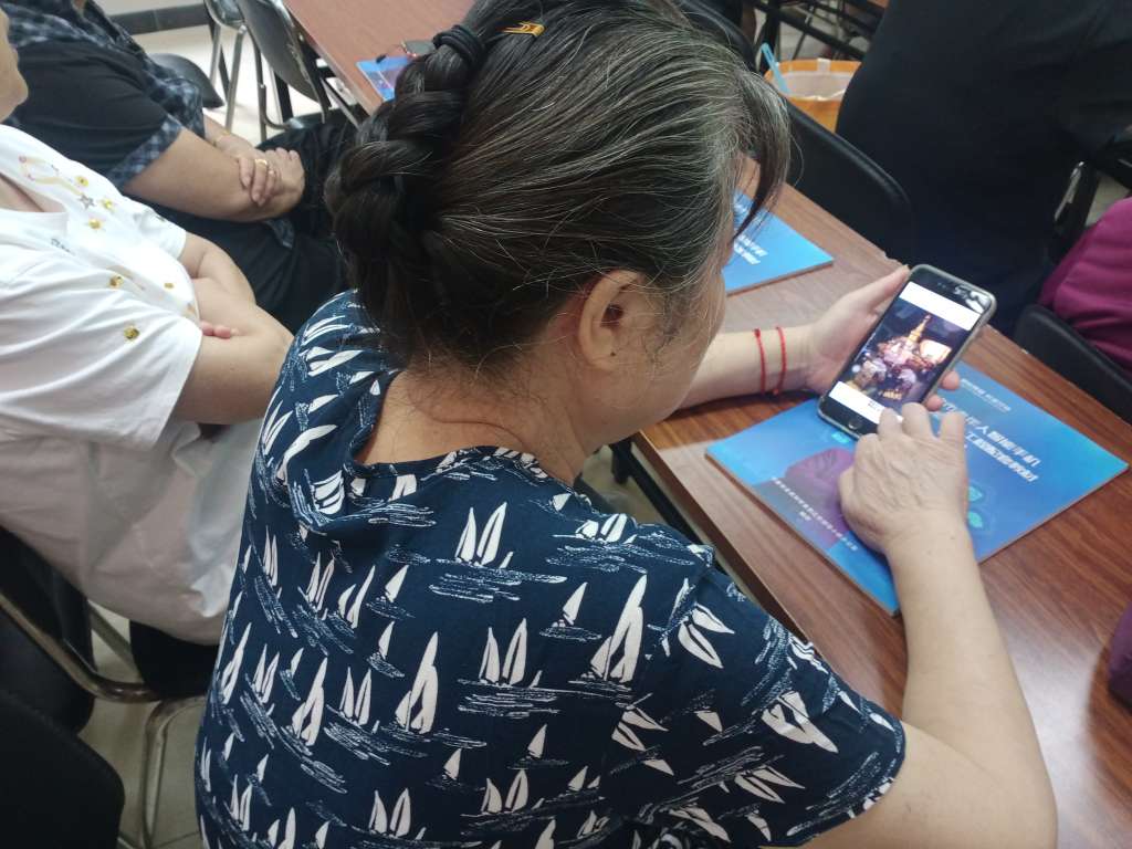 课堂上,谢虹老师利用PPT,详细耐心地教授大家如何使用微信交流、发朋友圈、视频通话、付款、挂号,扫场所码等内容。志愿者还针对每位老人不同的关注点,手把手教他们如何使用手机拍照、录制视频、下载手机软件、使用抖音等热门软件。同时,还向老年人宣传防范网络诈骗和电信诈骗的相关知识,帮助老年人提高反诈防骗的意识和能力,提升老年人使用智能手机等电子设备的信心。