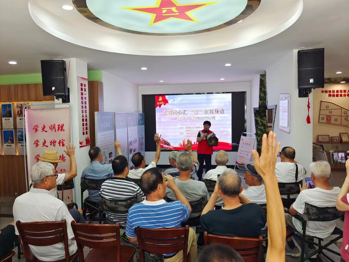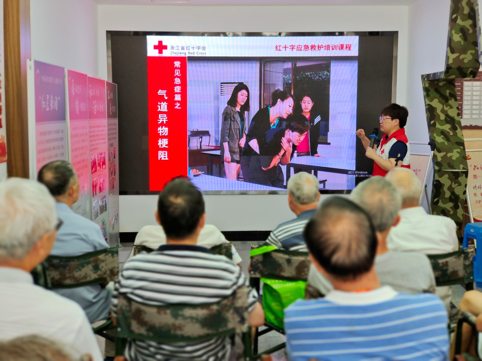2022年8月11日上午,中街社区联合镇海区红十字会举办“文明同心汇.救在我身边”退役军人急救知识培训活动。在活动过程中,救护员用通俗易懂的语言为退役军人讲解了几种气道阻塞的常见表现形式,方便大家进行现场判断。并通过现场播放急救教学视频、救护员和老兵志愿者演示了成人急救、婴幼儿急救及个人急救三种处理方法。还教授了大家急救包的使用办法,为大家普及急救知识。本次活动让退役军人更好的学习和掌握了急救知识,增强了自身应对突发事件时的自救互救意识,不但可以保护自己,也可以对有需要的人及时伸出援手。