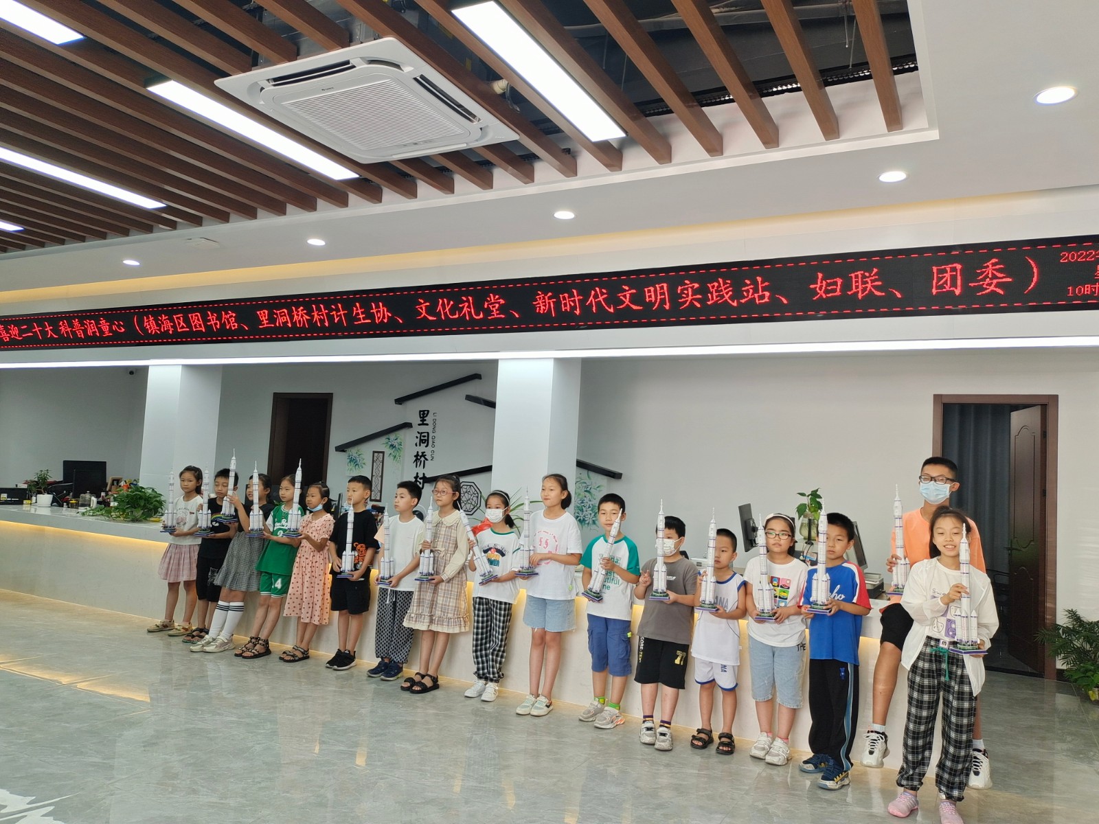 为了丰富青少年课外生活,培养青少年动手能力,在青少年中普及科学知识,910日,镇海区贵驷街道里洞桥村文化礼堂联合镇海图书馆、村妇联、计生、新时代文明实践站、团工委等联合开展喜迎二十大 科普润童心中秋亲子手工制作之火箭模型活动。