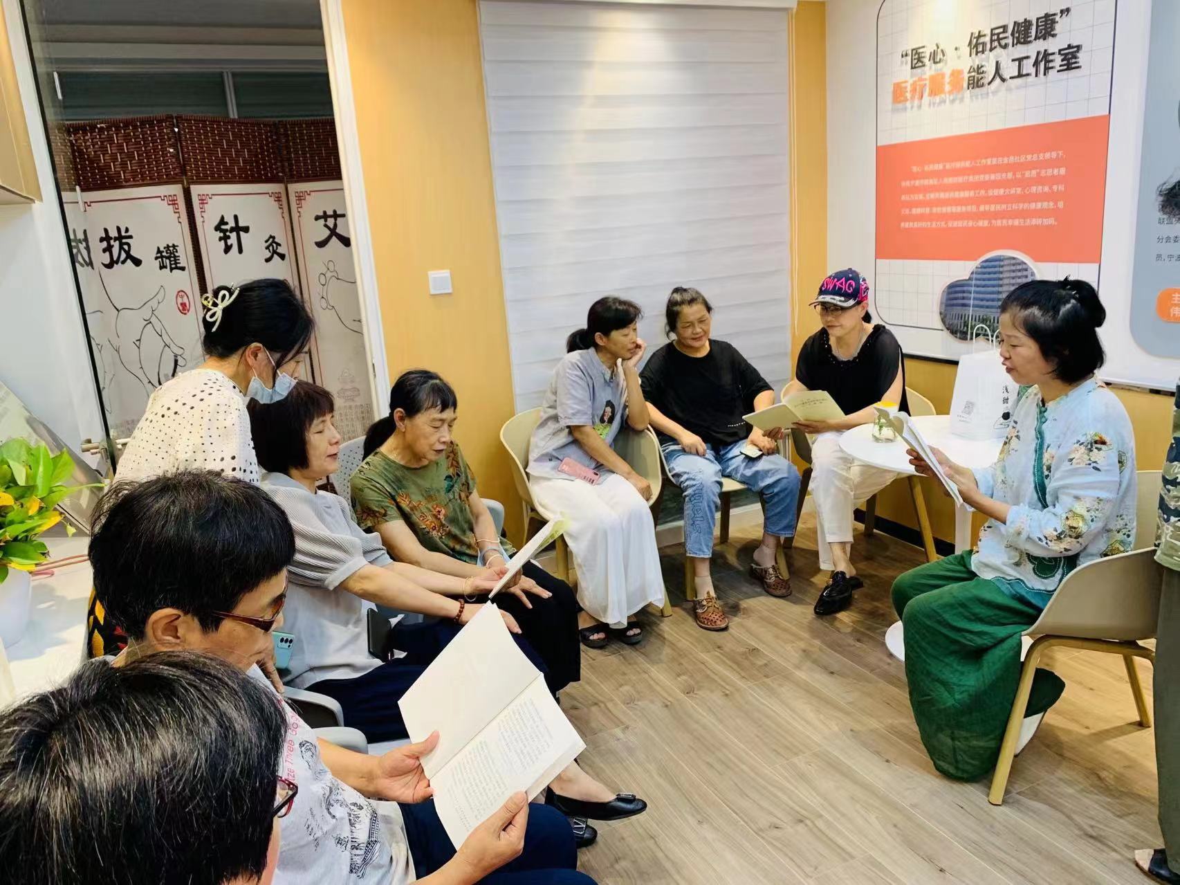 中秋佳节,万家团圆。9月9日下午,金邑社区妇联在“邑佳人”姐妹驿站开展了“月圆人团圆·中秋心连心”迎中秋话家风活动。“今天上台讲什么,看来你也不知道。快给大家提个醒--说家教。习近平总书记多次来强调,家风建设很重要,家风好坏看什么--看家教……”在金邑社区,妇联执委们自编自演的三句半《家风家教说》拉开了庆中秋活动的序幕。随后,艾益生健康养生馆陈仁娟老师给社区居民讲解了秋季养生小贴士,并示范了如何利用刮痧、艾灸等传统的养生手法赶走秋燥,保养身体。同时,为居民们提供了保健刮痧志愿服务。