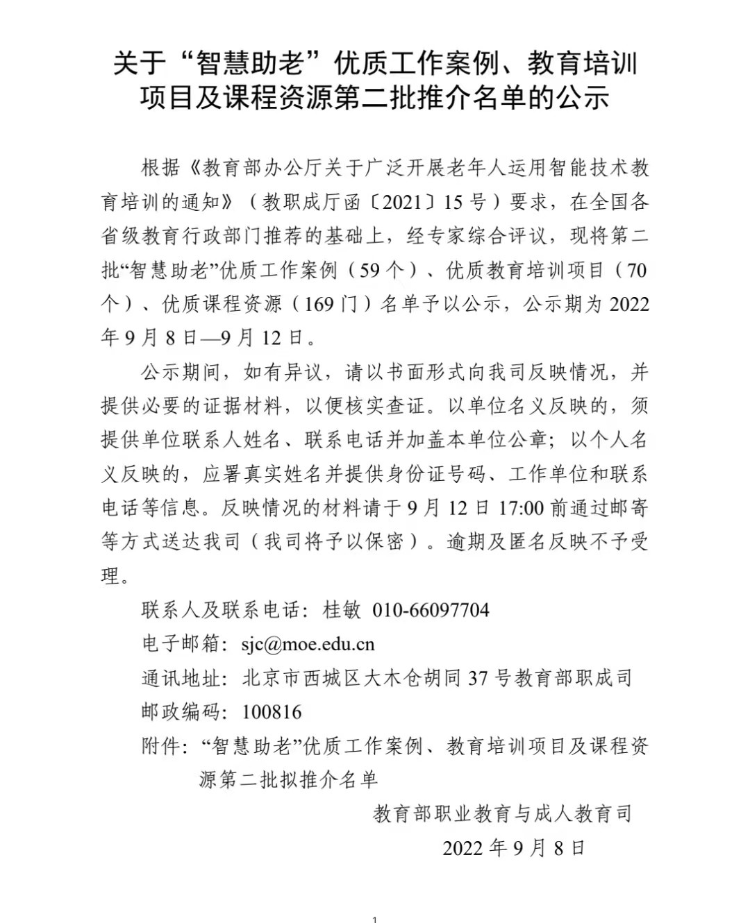 9月8日第38个教师节前夕,余姚电大(社区学院)收到了2022年秋天的第一份大礼:全国老年教育资源共享和公共服务平台公布教育部职业教育与成人教育司关于“智慧助老”优质工作案例、教育培训项目及课程资源第二批推介名单,学院社教处老年教育项目“‘姚优教’智慧助老实践路径”入选“智慧助老”优质教育工作案例。